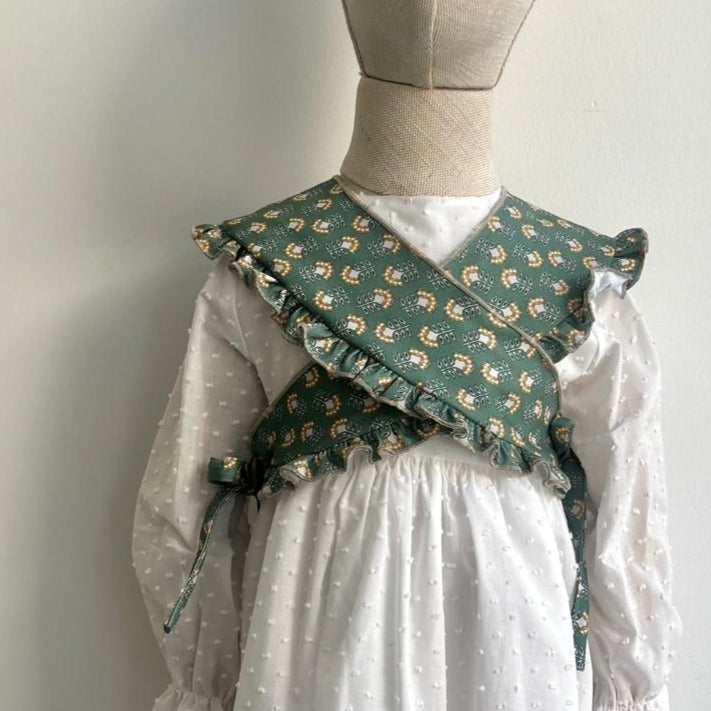 Los accesorios verde piedra son el complemento ideal para realzar el vestido plumeti blanco, aportando un toque de distinción y sofisticación. La capa, perfecta para ceremonias, ofrece elegancia y comodidad en ocasiones especiales. Las mañanitas, versátiles y delicadas, son ideales para combinar con el vestido, jerséis o blusas, añadiendo estilo y frescura a cualquier conjunto. Estos accesorios también pueden usarse por separado para darle un giro sofisticado y actual a tus looks diarios.