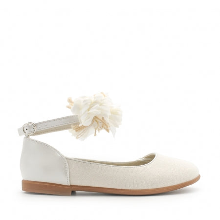 Estos zapatos, en un clásico color blanco, son confeccionados en polipiel y textil lino, lo que los hace suaves al tacto y cómodos de llevar. Con suela de goma.