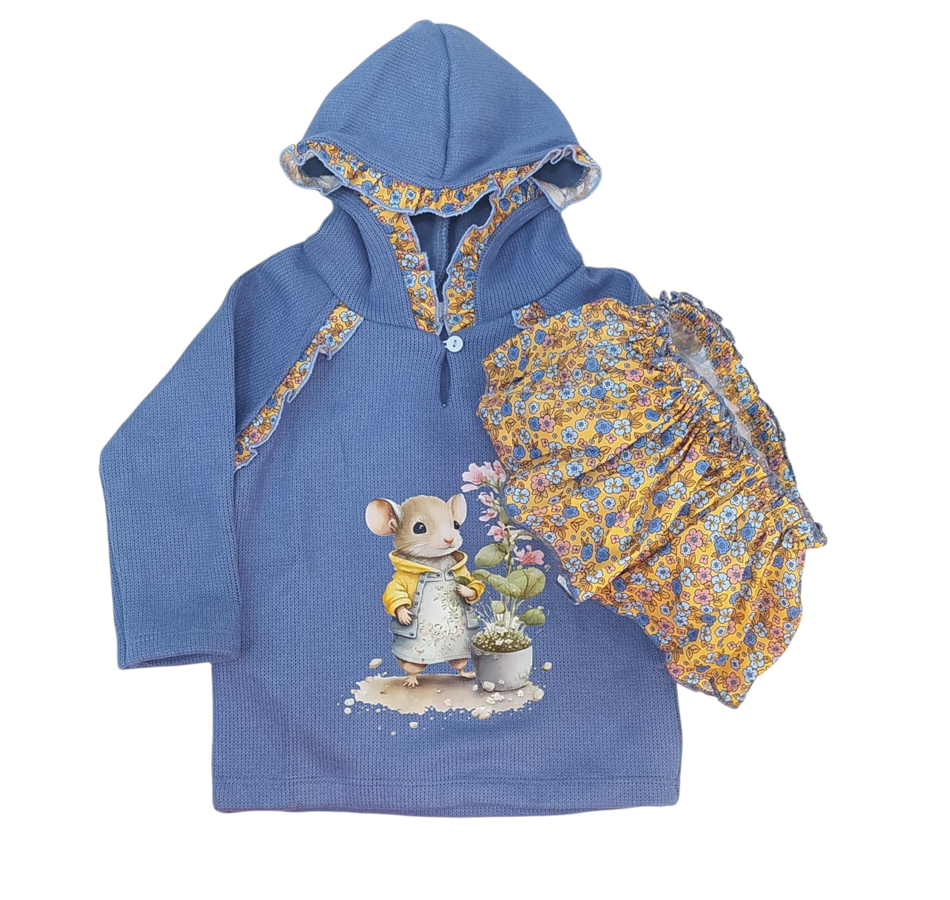 Conjunto formado por jersey de punto con capucha y cubre falda