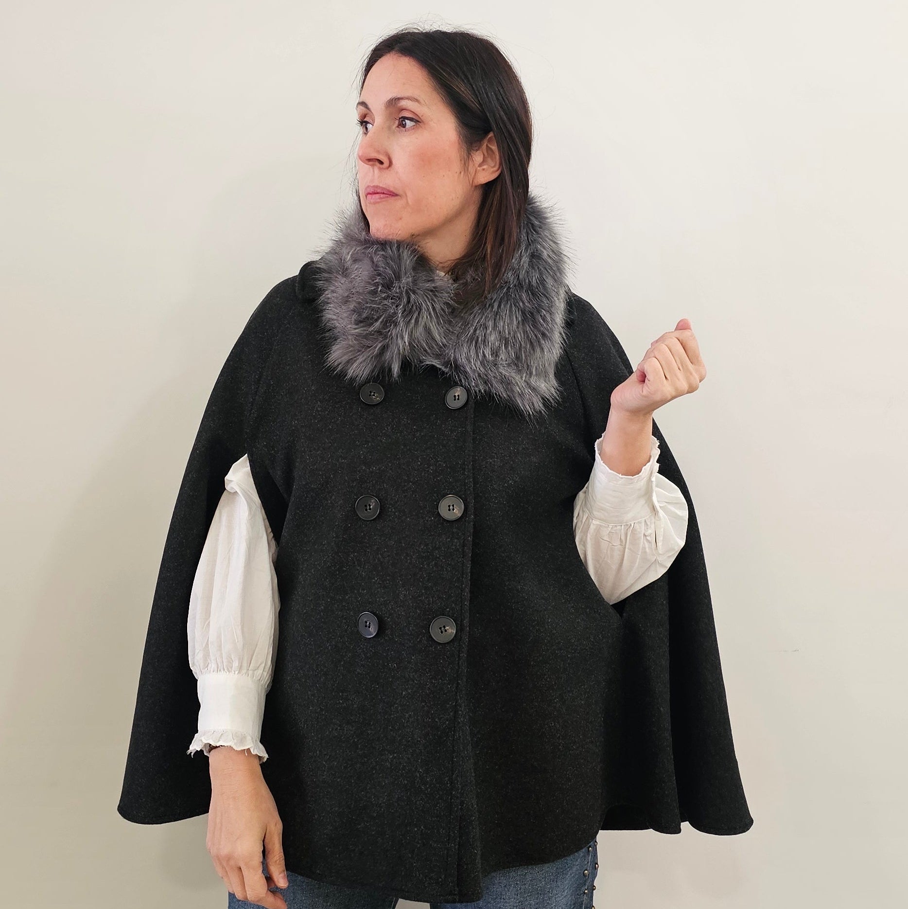 Ponte cómoda con esta capa versátil que abraza todas las tallas. Confeccionada en tejido suave y acogedor, se adapta perfectamente a una S-M-L-XL con su corte generoso. Los botones frontales facilitan el cierre, mientras que las aberturas laterales te permiten liberar las manos sin complicaciones. Con 74 cm de largo y sin forro interior, es tu aliada perfecta para capas desenfadadas que no sacrifican calidez ni estilo.