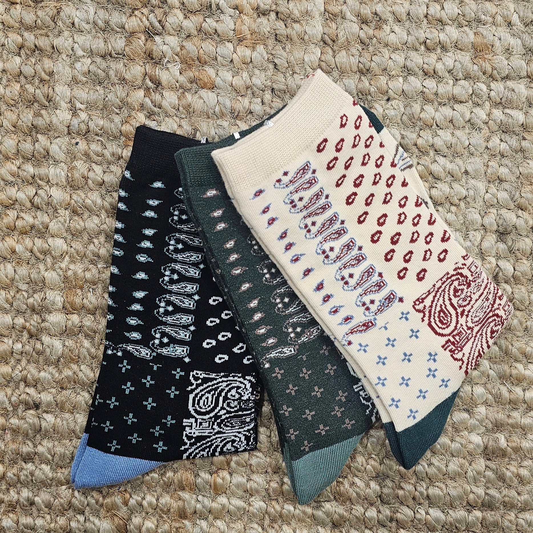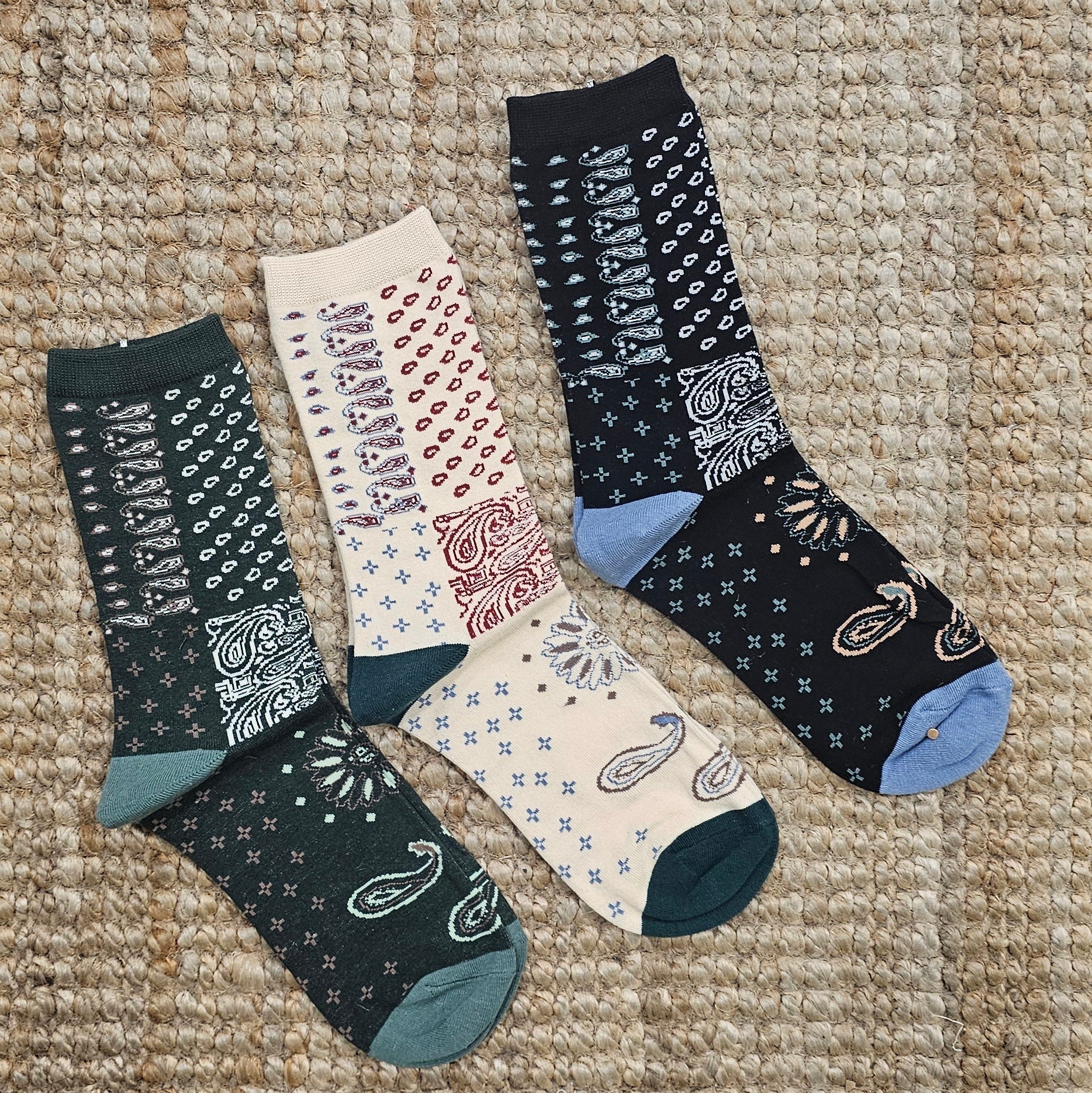 Tres pares de calcetines de algodón con un vibrante estampado paisley que añaden personalidad a tu día. Disponibles en tallas 35 a 41, son cómodos, duraderos y perfectos para quien busca un toque de color en sus básicos. ¡Dale vida a tu cajón de calcetines!