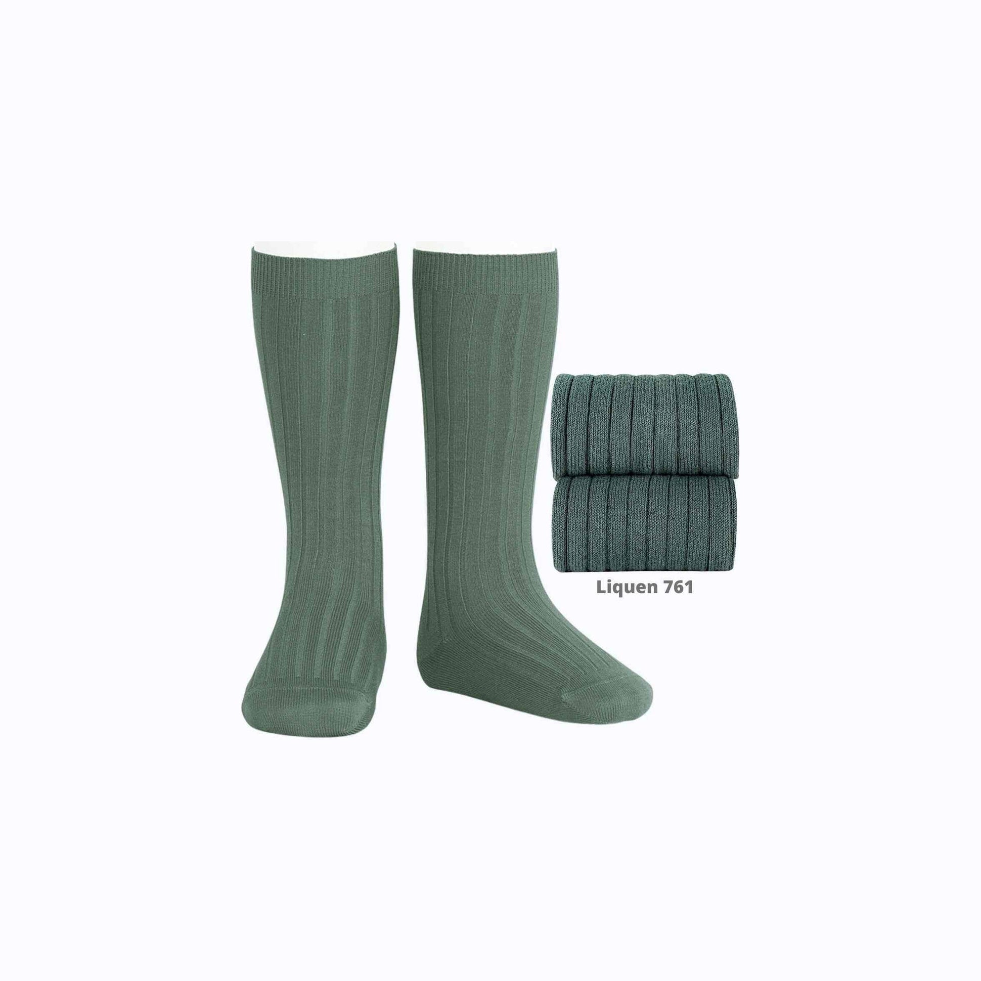 Calcetín alto de punto de canalé en color liquen