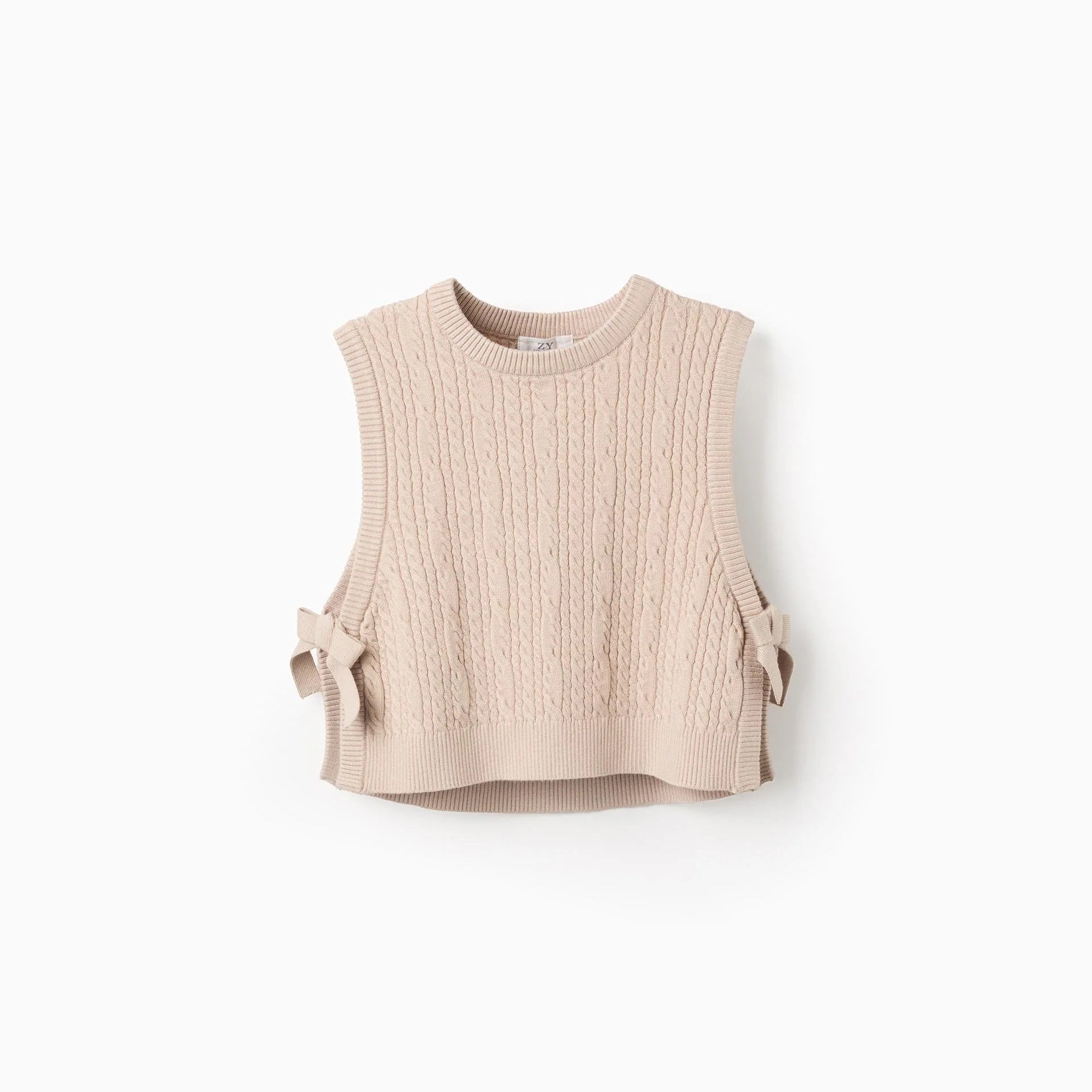 Jersey de punto calado naranja para niña, suave y cómodo. Hombros caídos y mangas ligeramente abullonadas. Extremos acanalados para un ajuste perfecto.