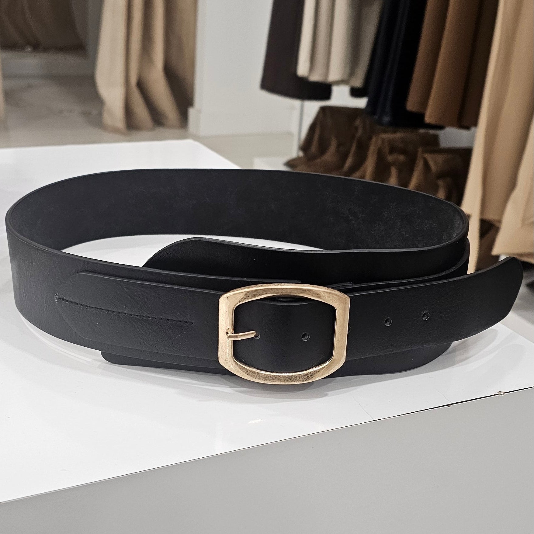 Cinturón sintético versátil disponible en el clásico negro y el cálido marrón. Con un ancho de 5 cm, ofrece ese punto de equilibrio perfecto entre presencia y comodidad. Ideal para definir la cintura en cualquier look, desde casual hasta más elaborado. Un accesorio imprescindible que funciona con todo.