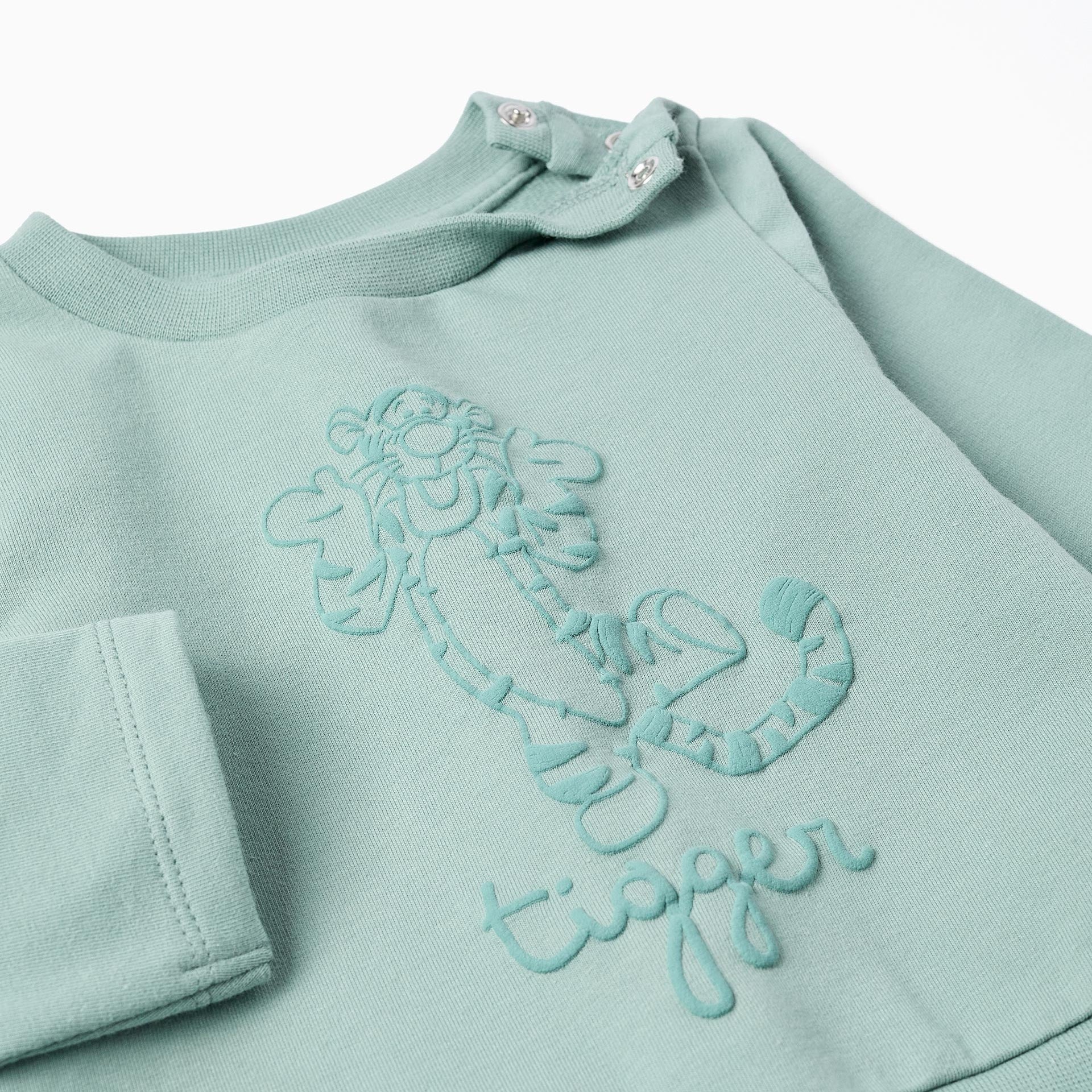 Descubre este cómodo set de Disney verde claro, perfecto para tu recién nacido. Incluye una sudadera con un divertido estampado frontal de Tigger, personaje de Winnie the Pooh. También incluye un pantalón de rayas blancas y verdes.