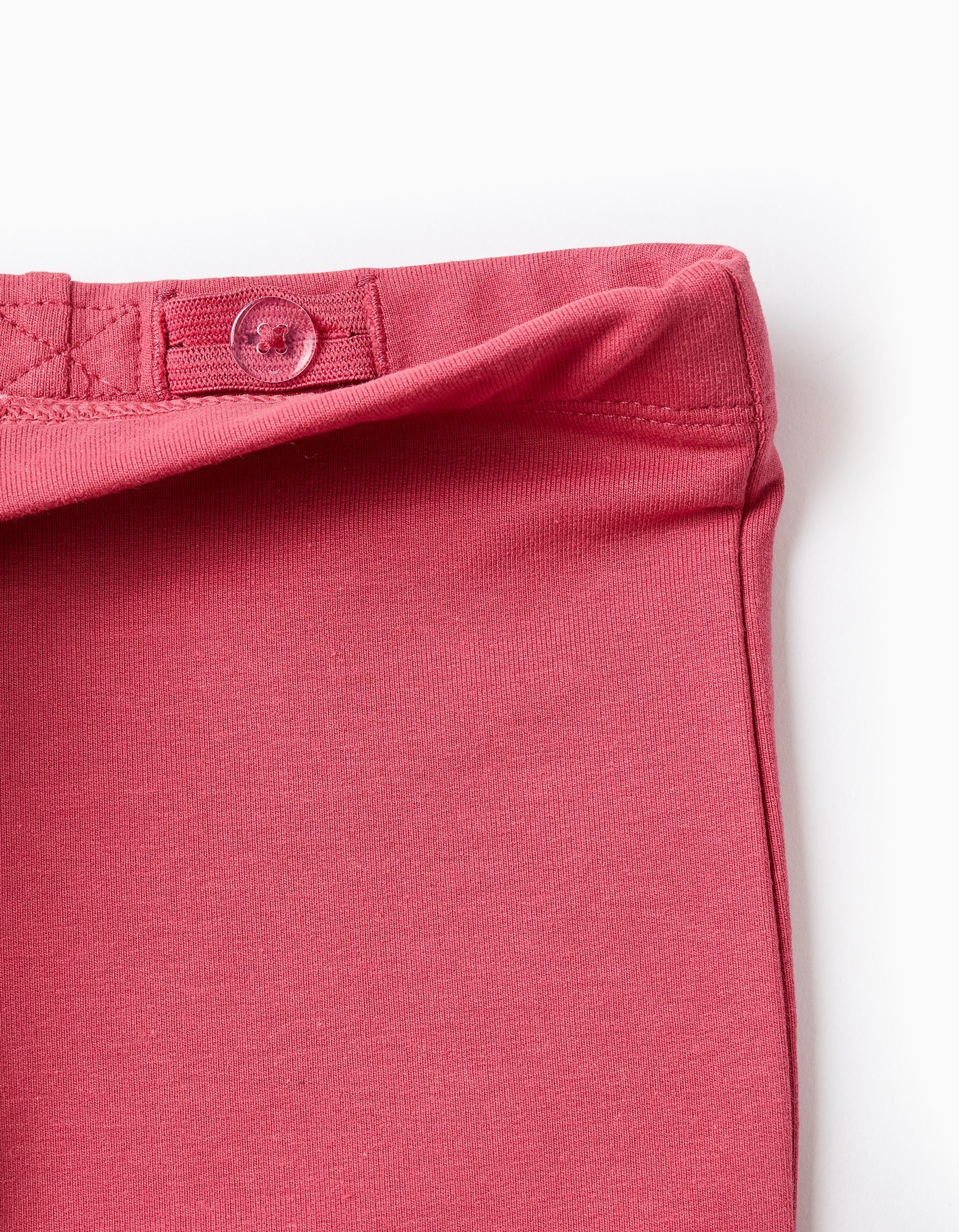 Chándal rosa para bebé niña, de algodón con un toque de elasticidad para mayor comodidad y libertad de movimiento. Incluye una sudadera con estampado de lazo en relieve y con volantes de tela blanca en la base; y unos pantalones lisos, con pequeños cortes laterales en los bajos. ¡Un conjunto práctico y cómodo con un toque femenino!