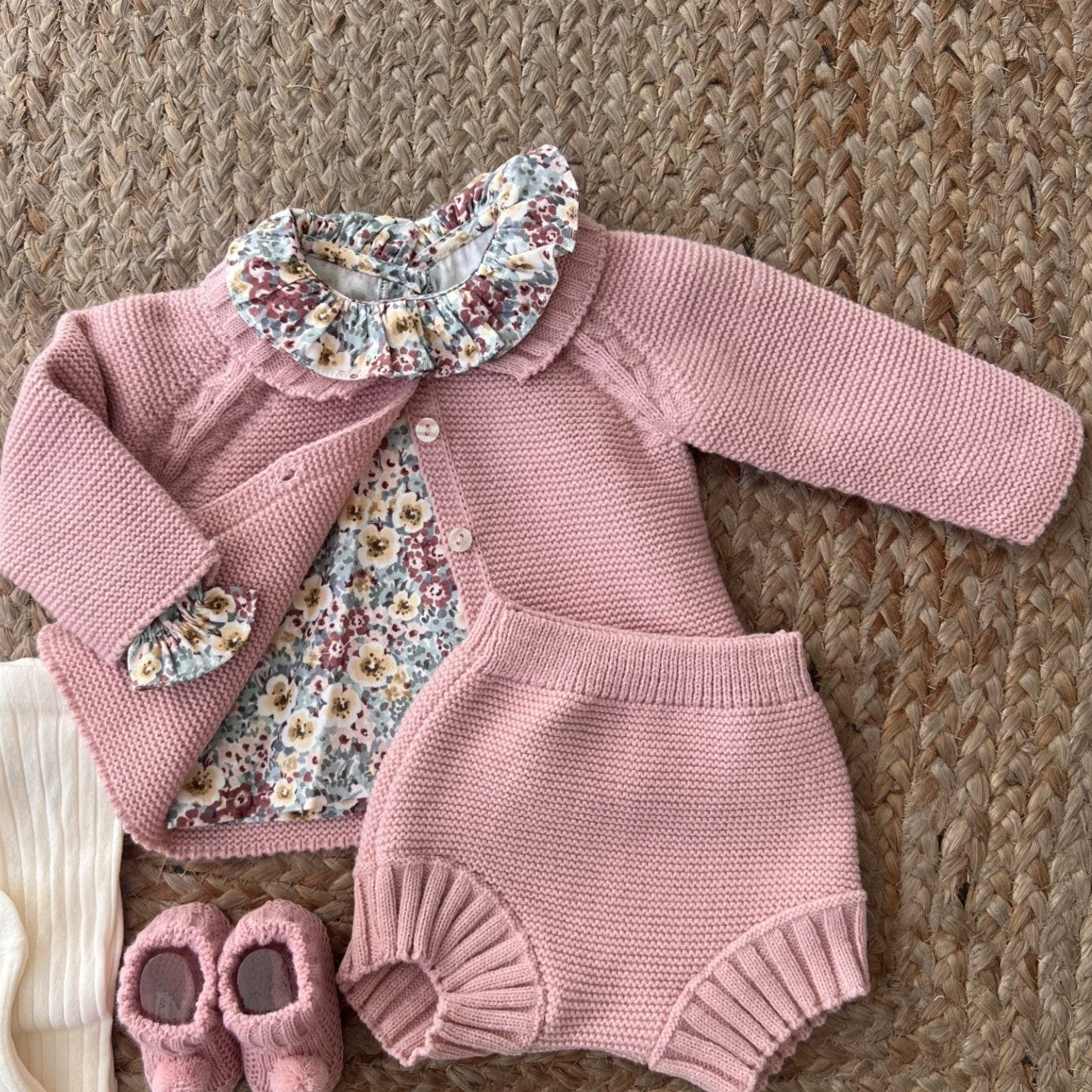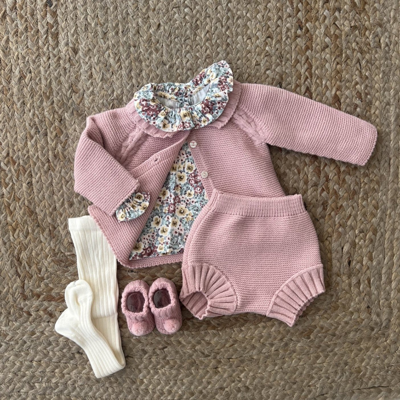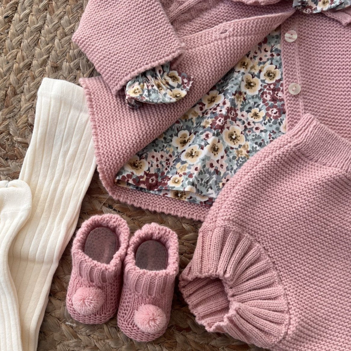 CONJUNTO: CUBRE PAÑAL, CAMISA Y REBECA.