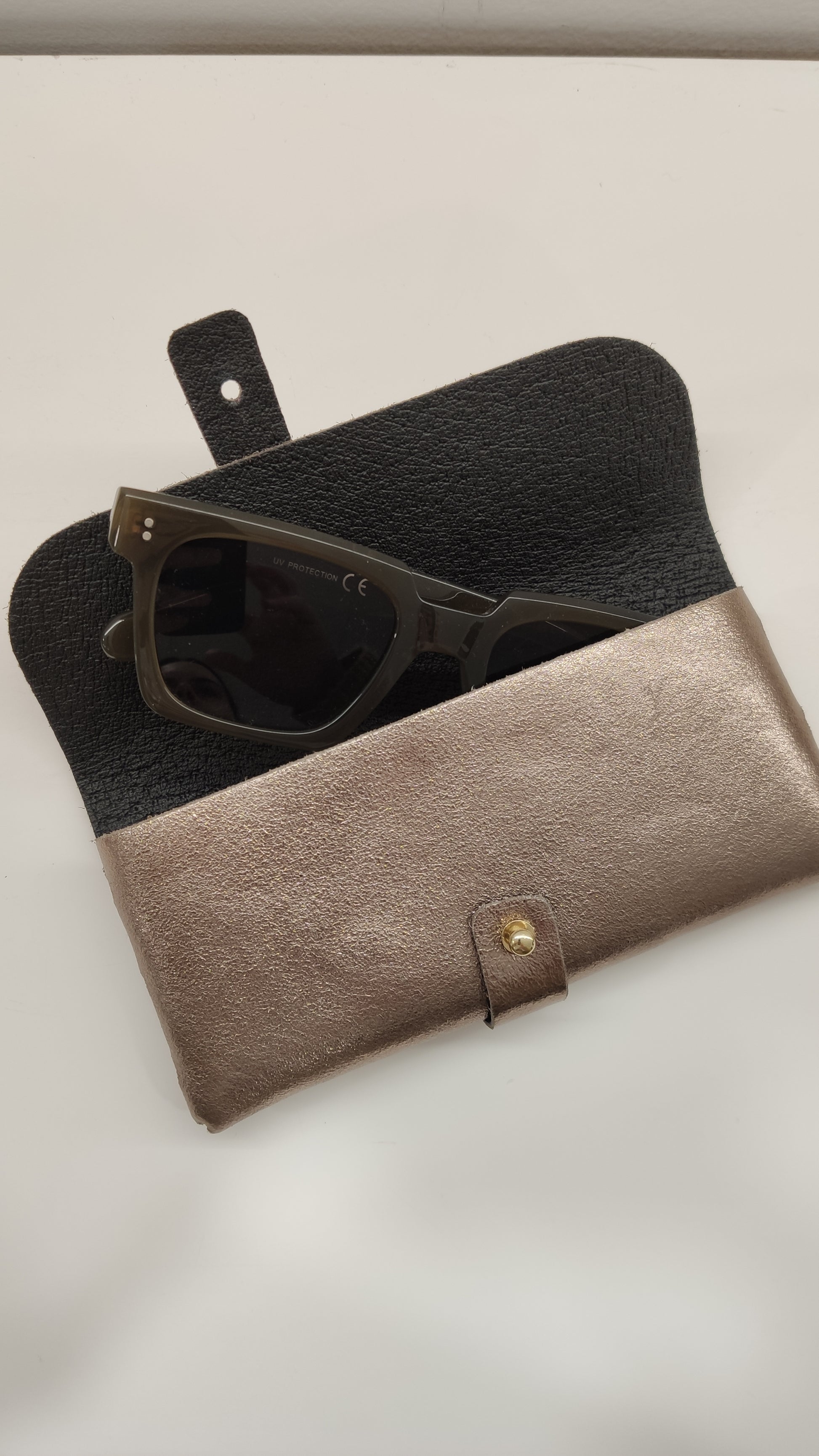 Guarda tus gafas con personalidad en esta funda de piel genuina. Perfecta en tamaño (18 x 9 cm), cabe en cualquier bolso sin ocupar espacio. ¿Te apetece un toque personal? Añade tu nombre o iniciales con grabado láser y recíbela en 7 días hábiles. Más allá de proteger tus gafas, es el compañero ideal para cualquier objeto pequeño que merezca cuidados especiales. Un accesorio práctico que refleja tu estilo.