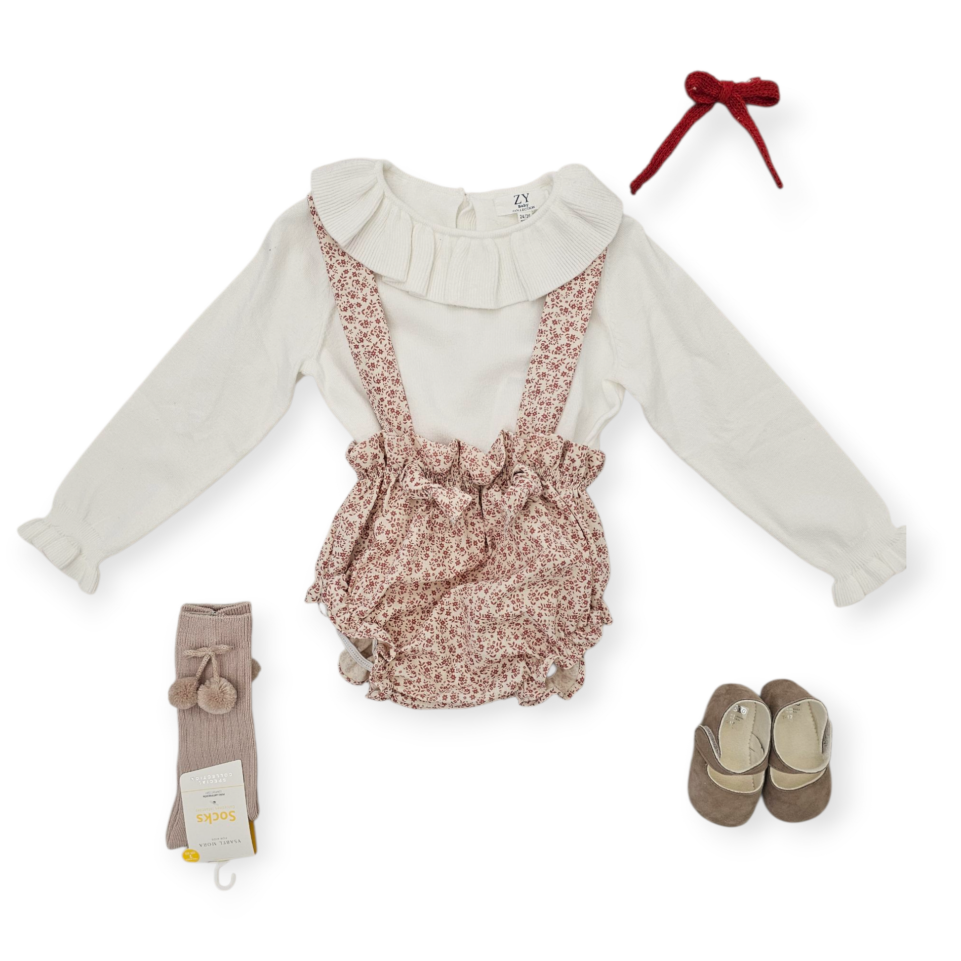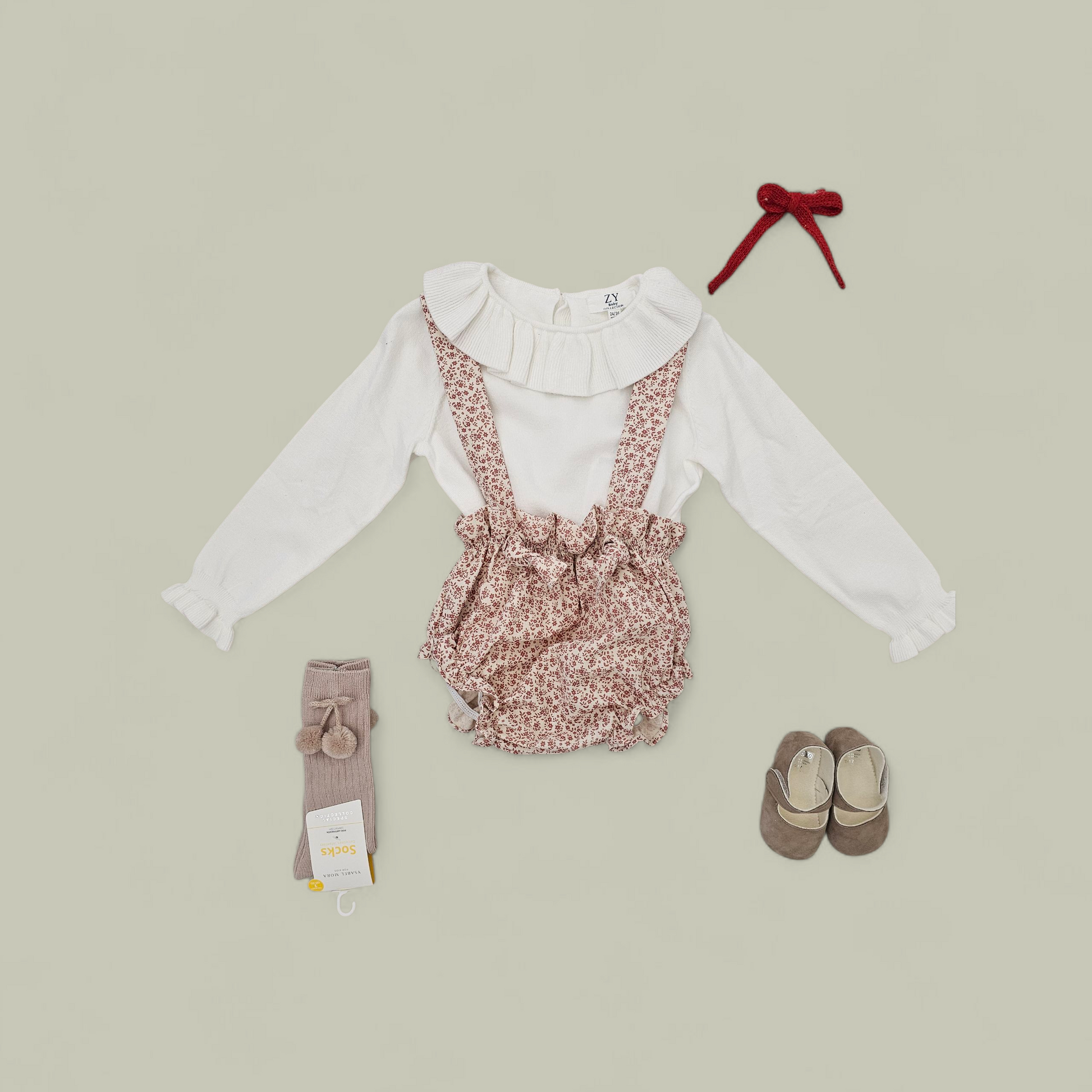Braguita cubre pañal con tirantes ajustables mediante nudo, que incorpora gomas elásticas en cintura y piernas para un mejor ajuste. Fabricada en tejido con delicadas florecitas rosas, disponible en múltiples estampados. Gracias a sus elásticos, se adapta a diversas tallas. Combínala fácilmente con nuestro body de bambula, así como con calcetín alto o leotardos en tonos coordinados.
