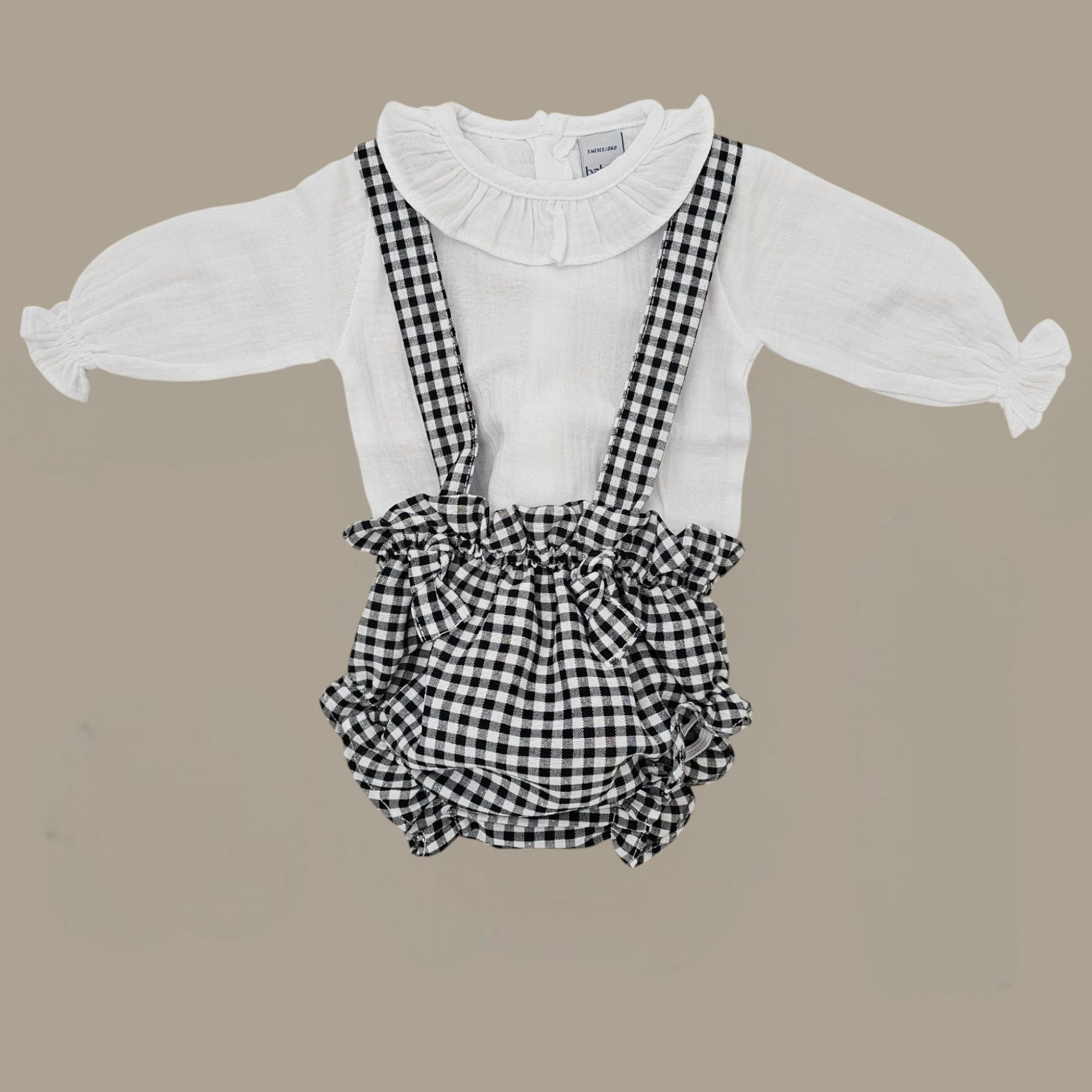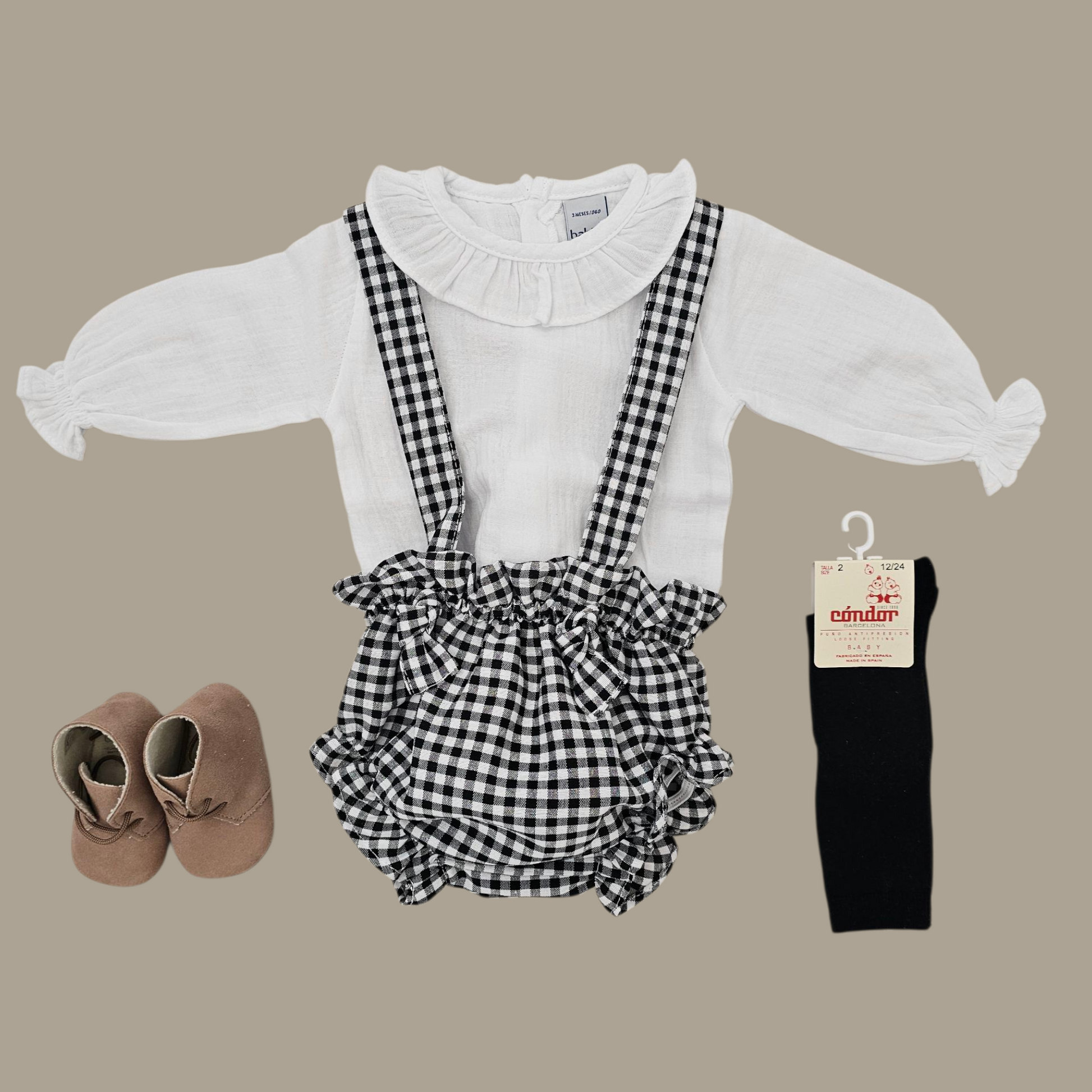 Braguita cubre pañal con tirantes ajustables mediante nudo, que incorpora gomas elásticas en cintura y piernas para un mejor ajuste. Fabricada en tejido con delicadas florecitas rosas, disponible en múltiples estampados. Gracias a sus elásticos, se adapta a diversas tallas. Combínala fácilmente con nuestro body de bambula, así como con calcetín alto o leotardos en tonos coordinados.