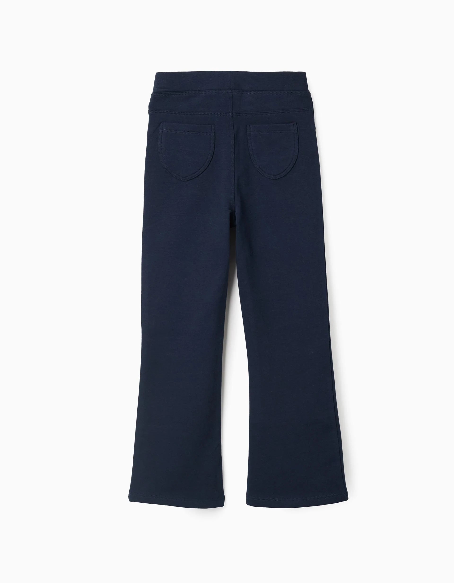 Jogging para niña, con interior afelpado para mayor confort térmico. Corte acampanado. Bolsillos decorativos delante y funcionales detrás. Cintura elástica, ajustable en el interior con elásticos y botones. ¡Una opción práctica y flexible, ideal para el día a día!