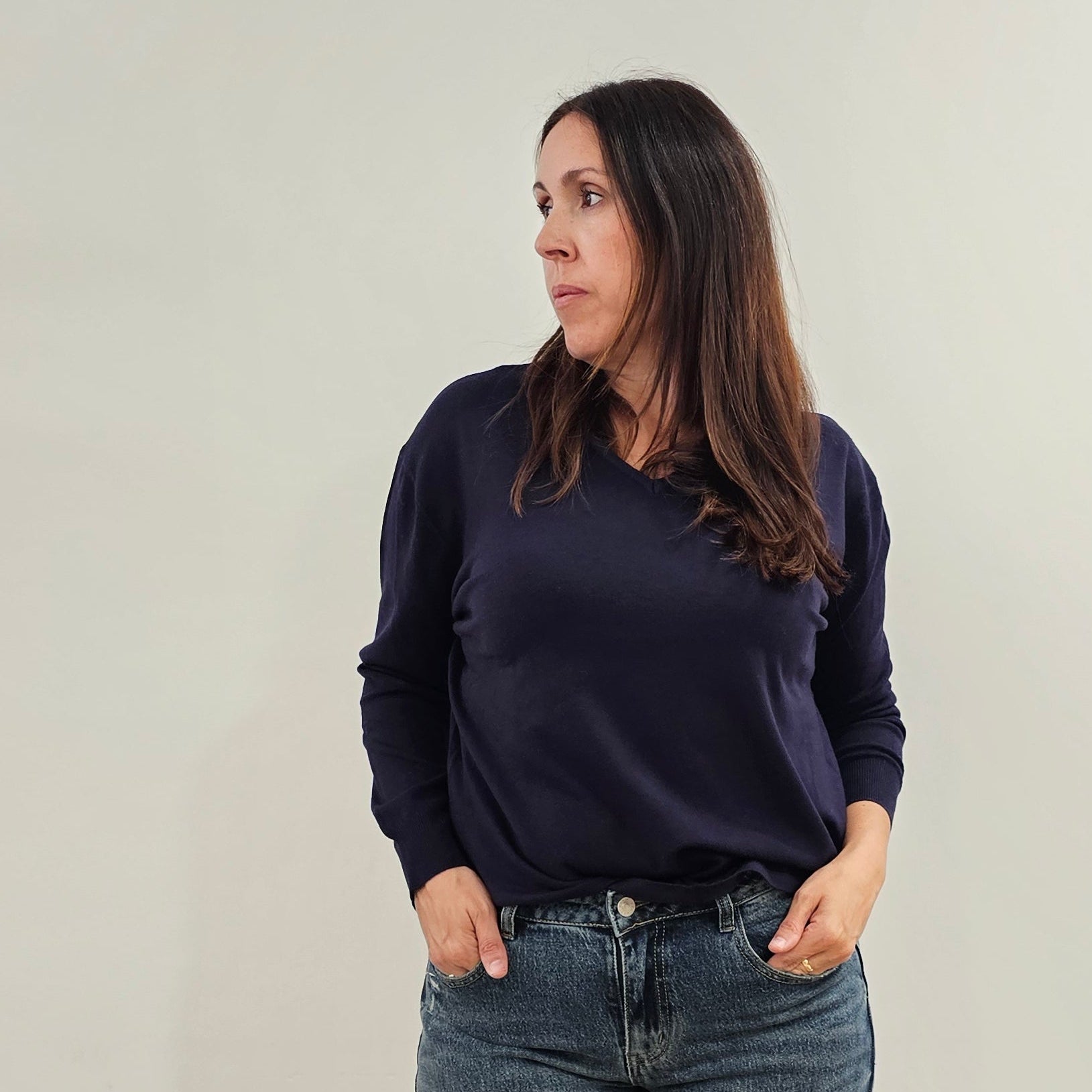 Jersey fluido tejido fino.