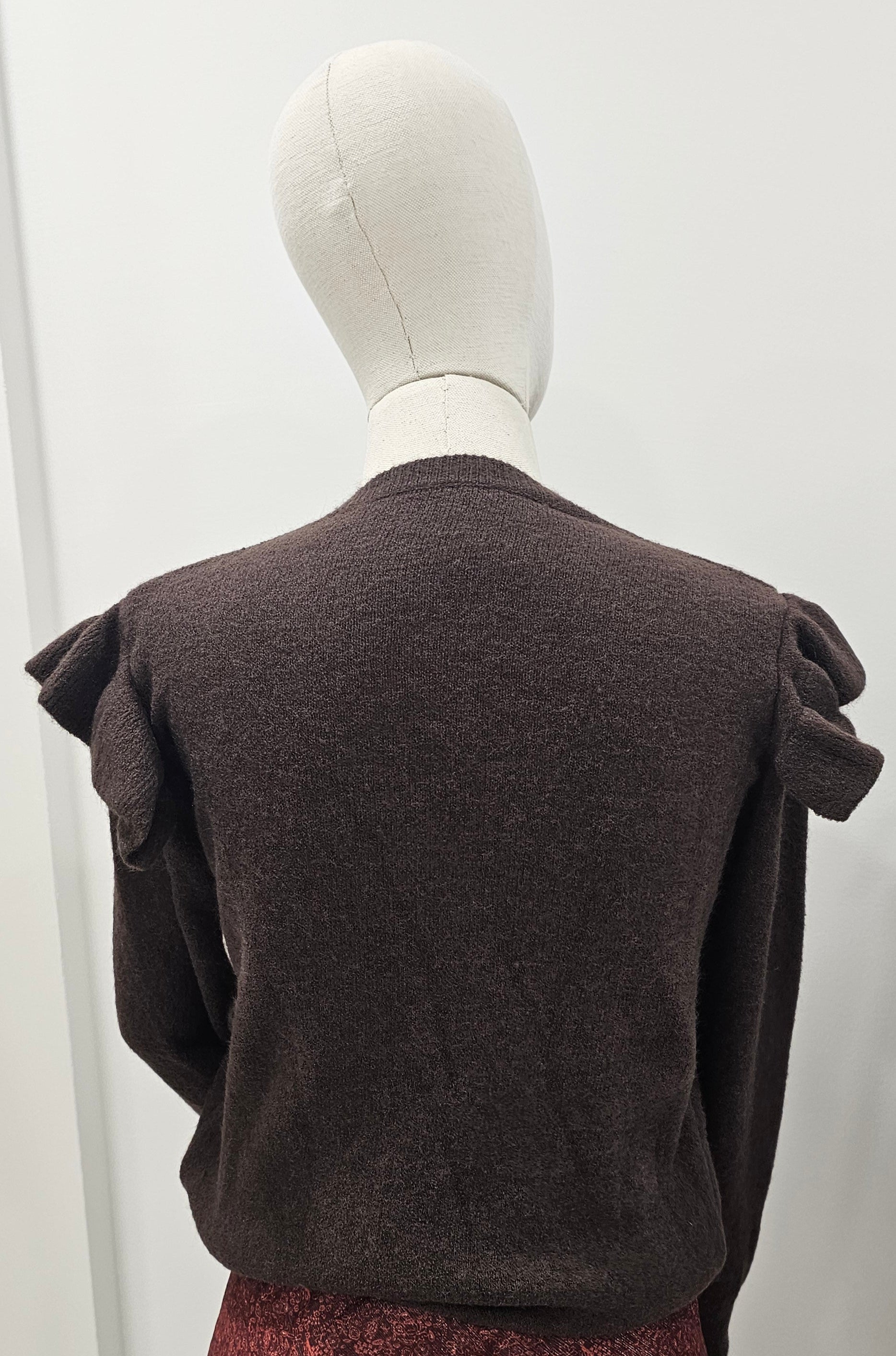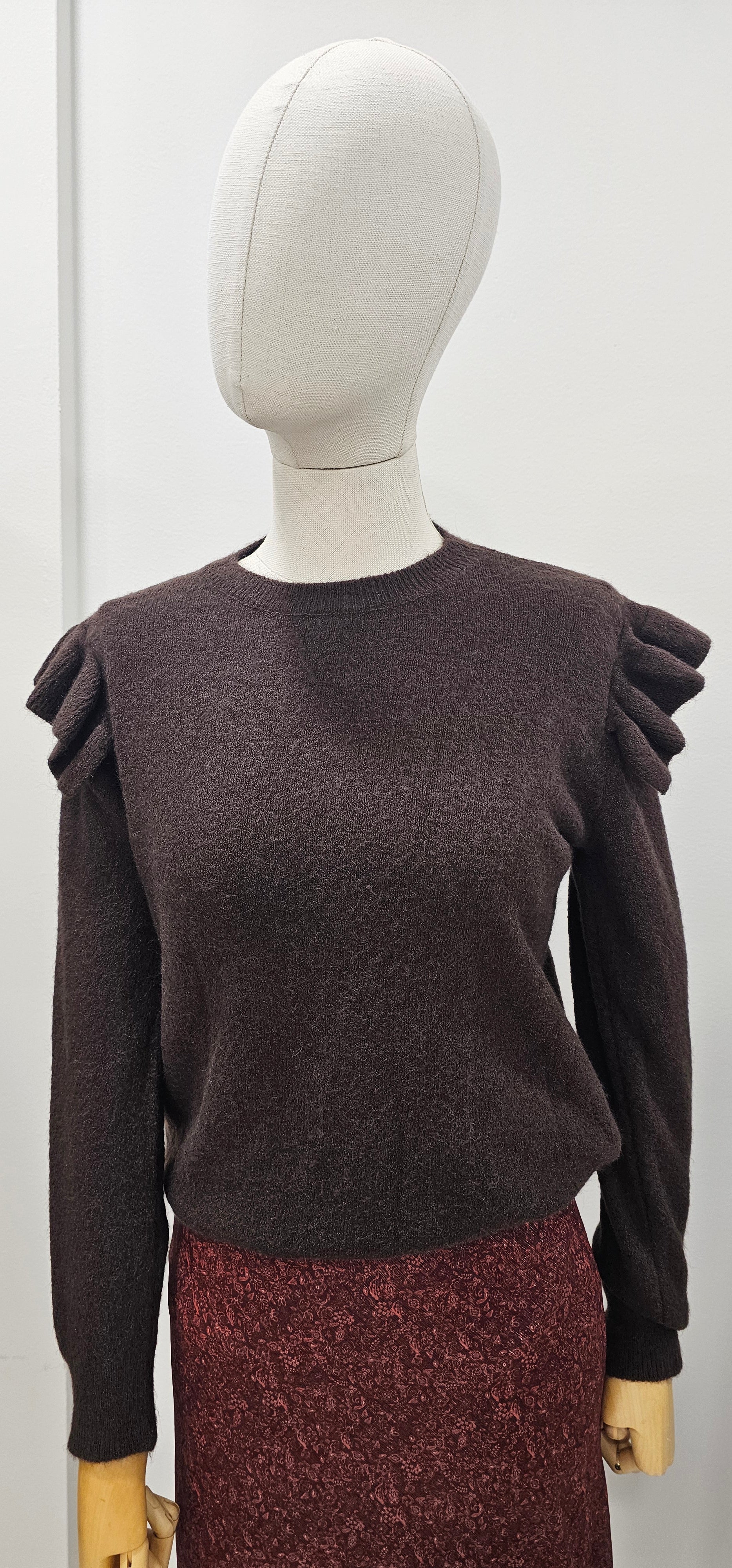 Este jersey de punto con volantes en los hombros combina estilo y comodidad en una sola prenda. Su talla única se adapta perfectamente a las medidas XS, S y M, gracias a su tejido ligeramente elástico que proporciona un ajuste flexible sin perder forma. Ideal para aportar un toque femenino y sofisticado a cualquier outfit.