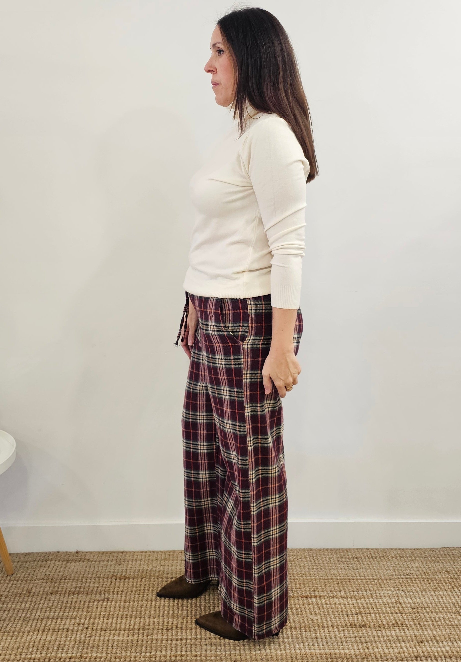 PANTALÓN CUADROS BURDEOS