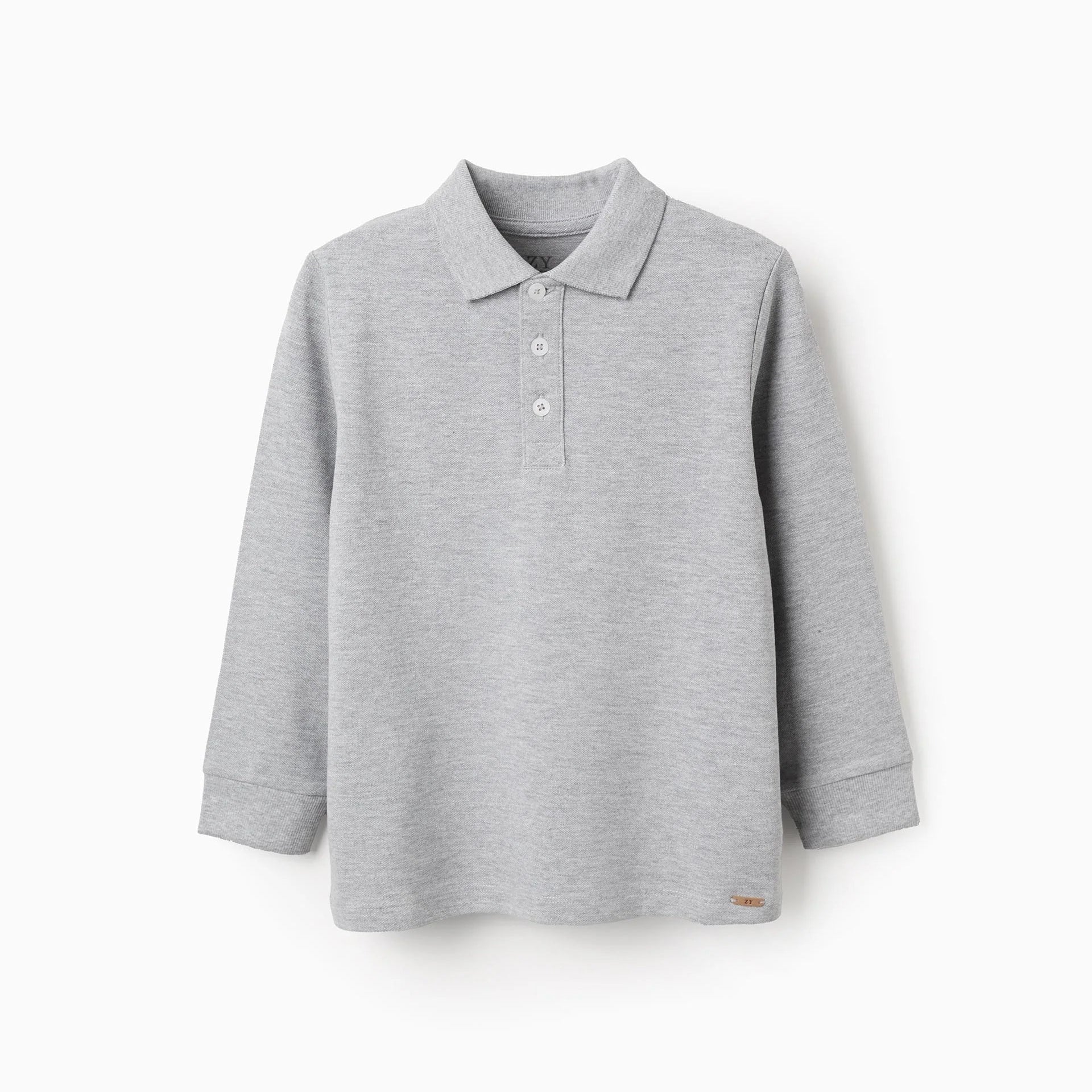 Polo de manga larga gris para niño, fabricado en piqué 100% algodón. Puños acanalados para un ajuste perfecto. Etiqueta interior estampada para no irritar la piel. Un esencial del armario. We Care: artículo con certificado Oeko-Tex Standard 100, que garantiza la ausencia de sustancias nocivas o irritantes para la piel.