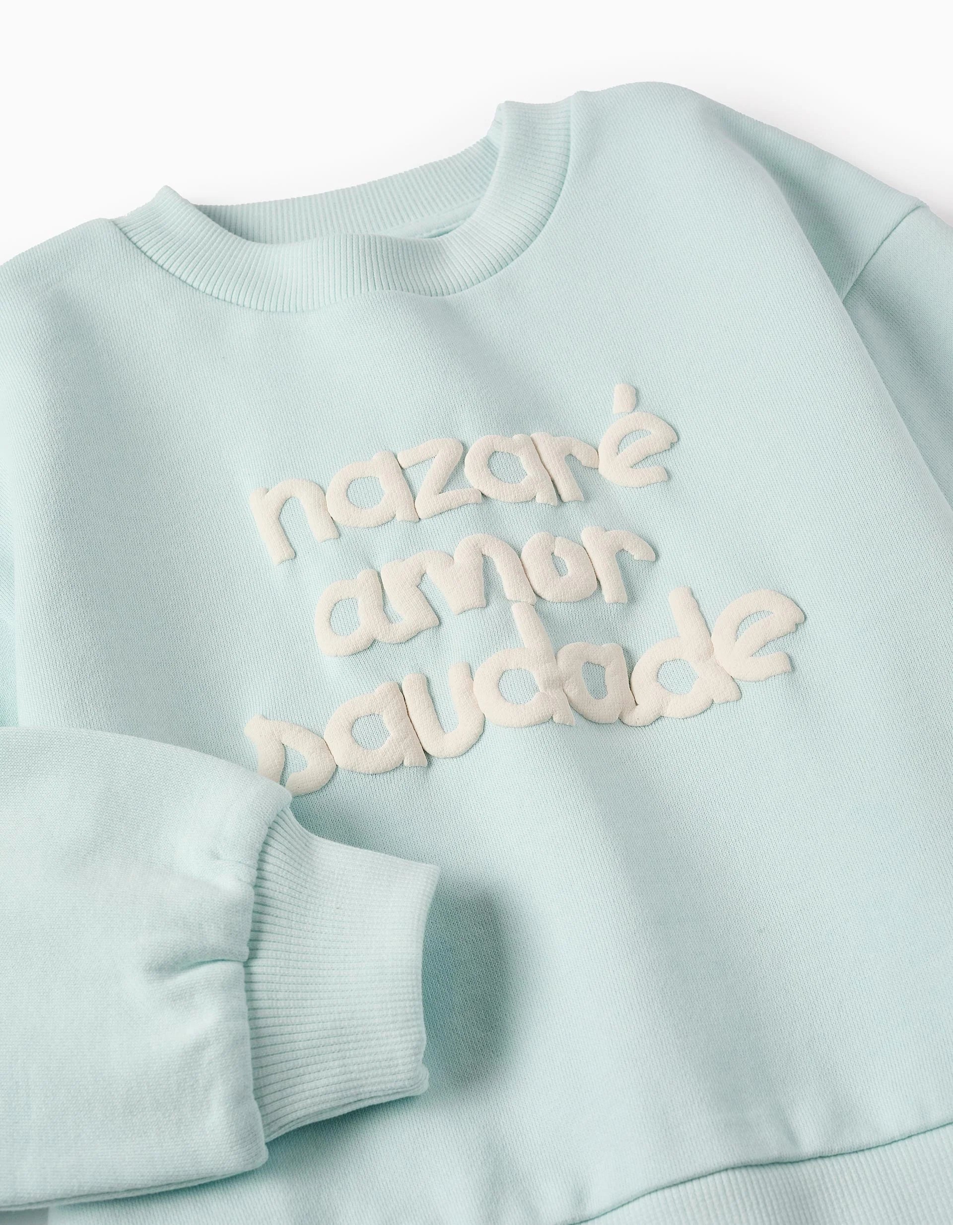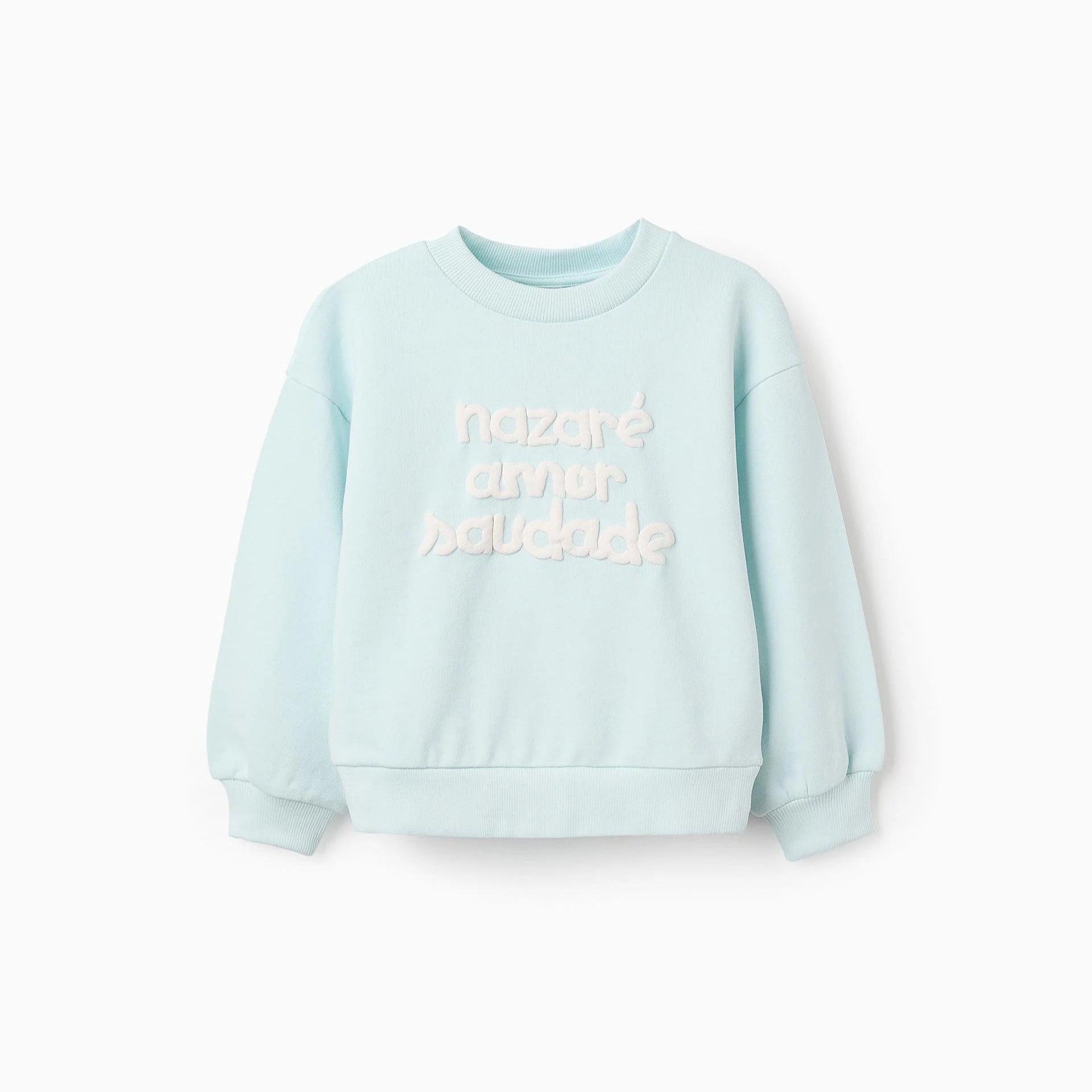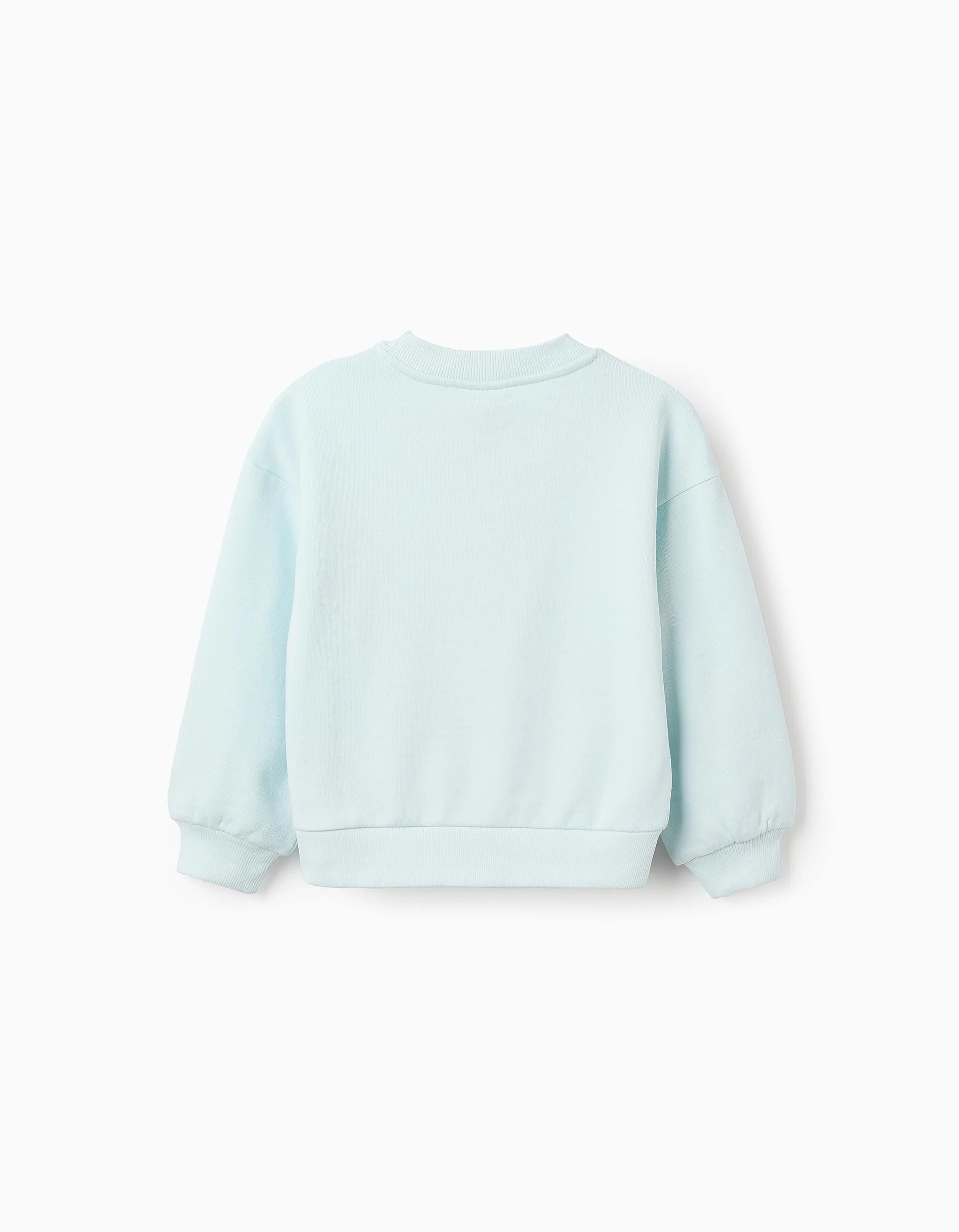 Sudadera azul claro para niña, 100% algodón, con estampado frontal en relieve. Puños acanalados para un ajuste perfecto. Hombros caídos para un look más relajado. ¡Ideal para los looks del día a día!