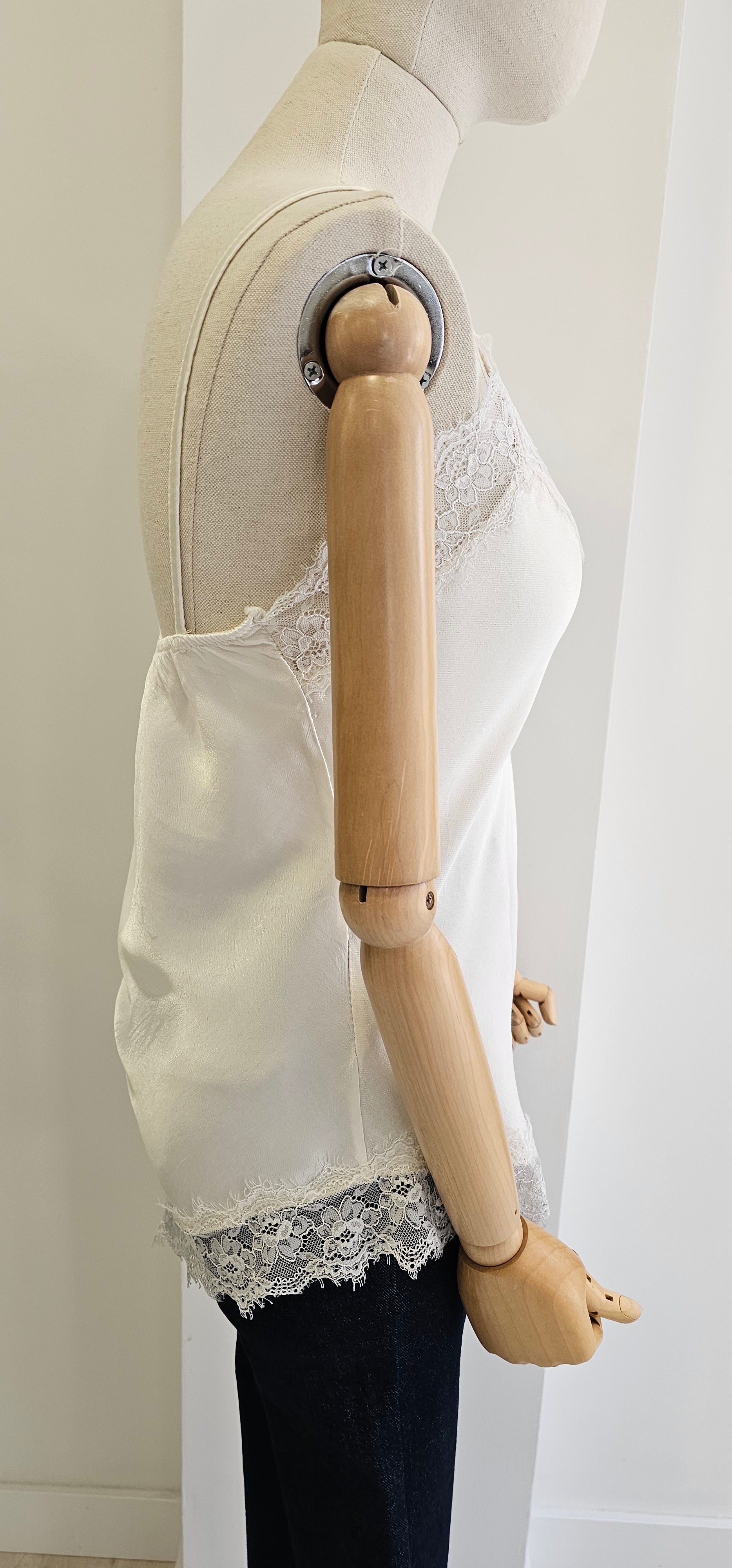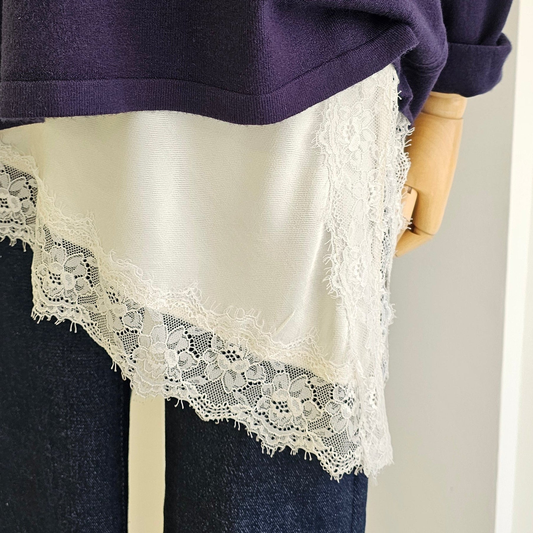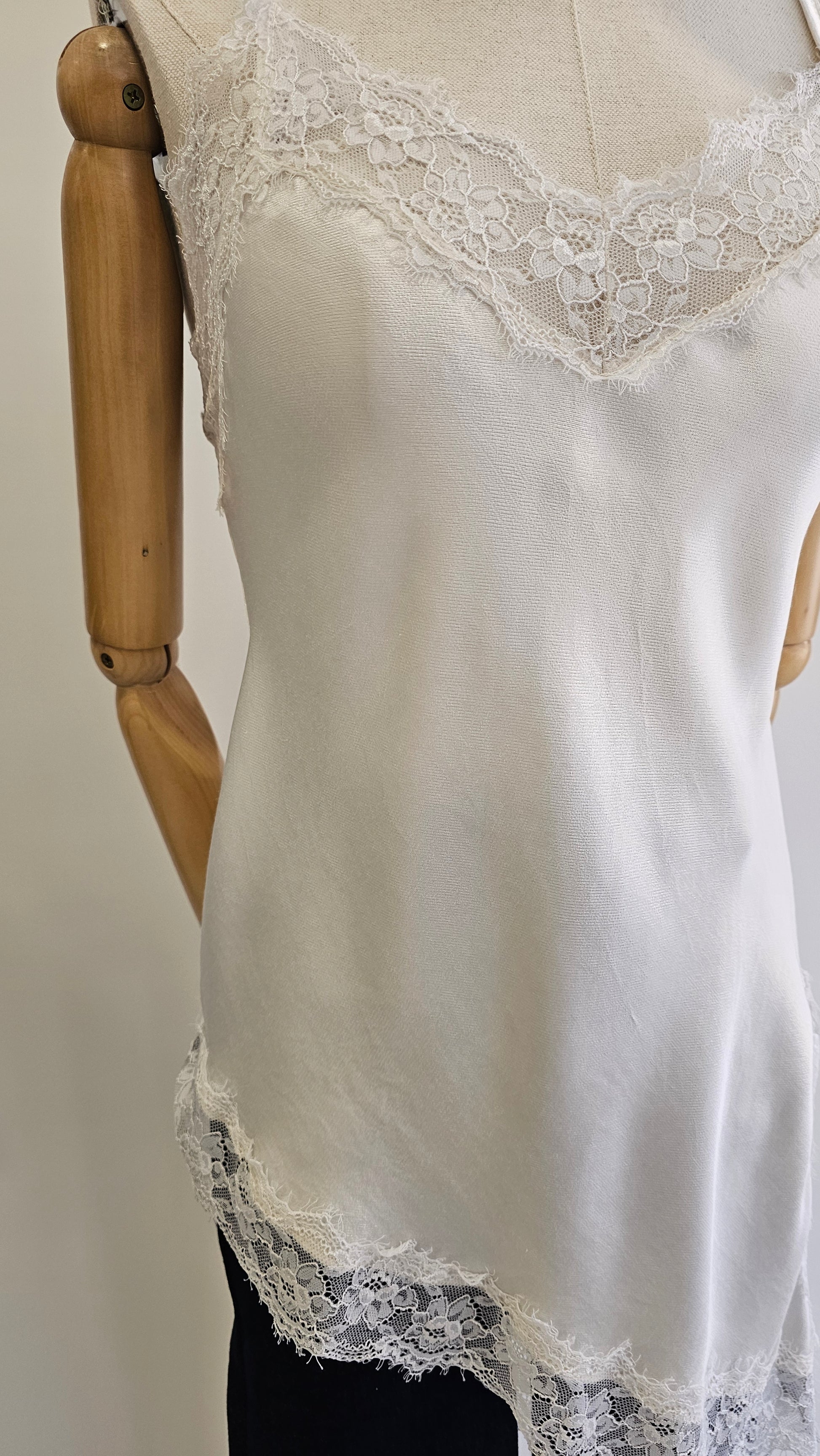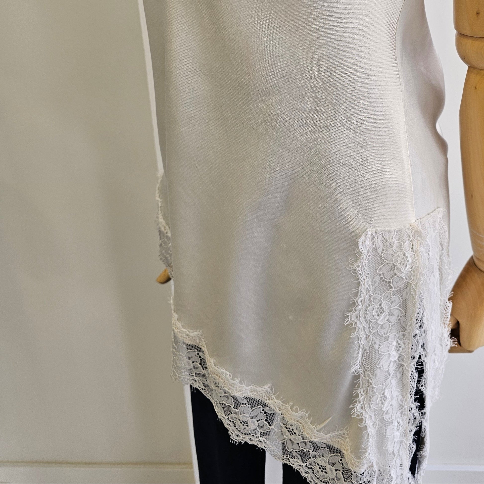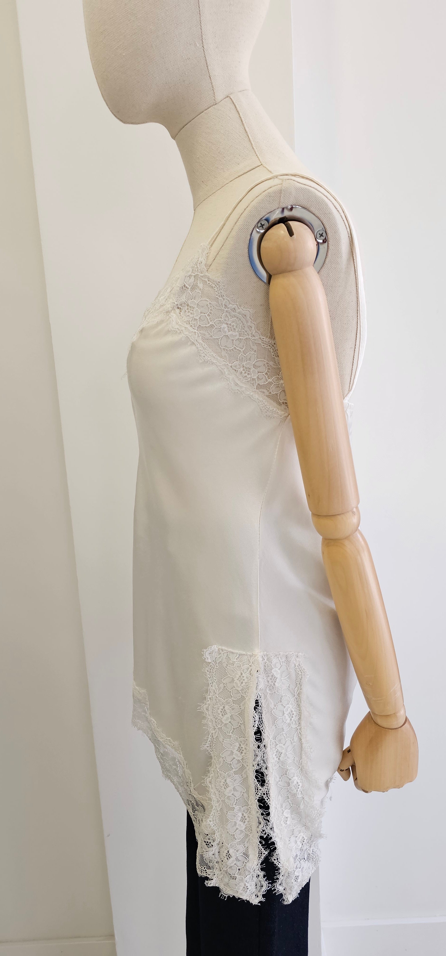 Talla única que abarca desde XS hasta M. Confeccionado en un tejido de calidad superior y caída impecable. Perfecto para combinar con un jersey corto y escotado que deje visible el delicado encaje y el diseño asimétrico con corte en pico en un solo lateral. Disponible en colores blanco y marrón.