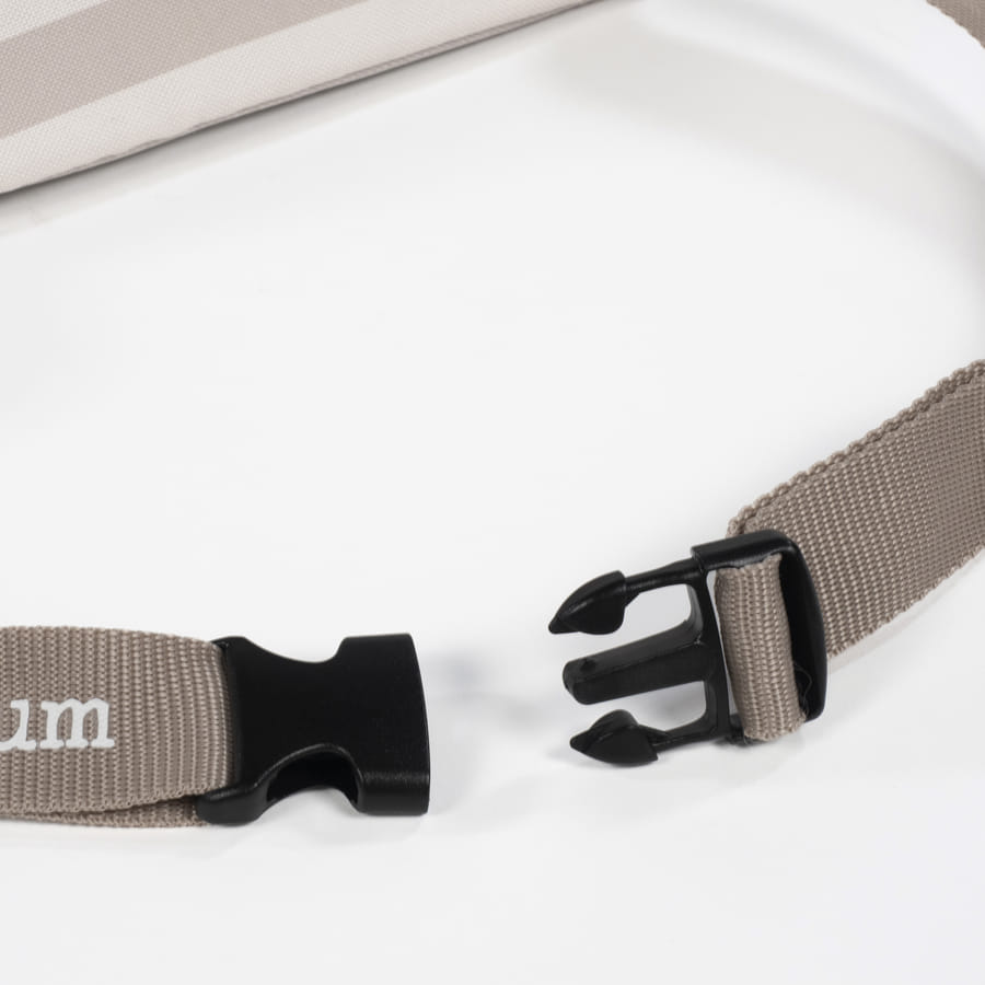 Esta trona portátil para bebés Sintra Beige con rayas es la solución perfecta para padres en movimiento que desean ofrecer a sus pequeños un asiento seguro y cómodo en cualquier lugar. Con un diseño moderno de rayas en tonos neutros, esta trona que combina funcionalidad y estilo es la solución perfecta para alimentar a tu bebé en cualquier lugar. Su diseño plegable permite llevarla fácilmente a cualquier lugar, ya sea a un restaurante, de viaje o a la casa de los abuelos. Cuenta con una correa para llevarla cómodamente al hombro. Incluye un compartimento de almacenamiento en la base, perfecto para guardar pañales, toallitas u otros accesorios esenciales del bebé. Se adapta a la mayoría de las sillas de adulto estándar, ofreciendo versatilidad y comodidad en diferentes entornos. Incluye correas ajustables para fijarla de manera rápida y segura a al respaldo y al asiento. Las medidas mínimas de las sillas de adulto para poder fijar la trona son: altura mínima de respaldo 48.5 cm, anchura mínima del asiento 36 cm y profundidad mínima del asiento 34 cm. Dispone de arnés ajustables para sujetar bien al bebé proporcionando máxima seguridad durante las comidas. Fabricada con materiales de alta calidad, duraderos y resistentes, ideal para el uso diario. Es muy fácil de limpiar ya que es completamente desenfundable. Esta silla portátil está destinada para bebes que puedan mantenerse sentados por si solos. Desde los 6 meses hasta máximo 3 años o un peso máximo de 15 kgs. Cumple con la normativa EN 16120:2012+A2:2016. Asiento elevador. Walking Mum protege a tu bebé utilizando los mejores tejidos, libres de colorantes azoicos y sustancias nocivas para la salud. Especificaciones: Materiales: 100% Poliéster. Medidas cerrada: 29x36x31 cm.
