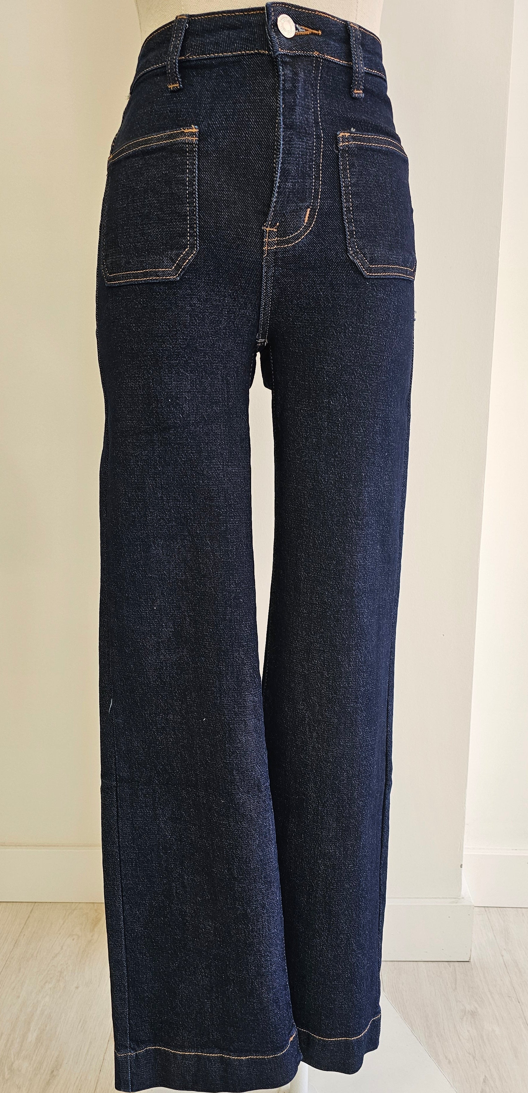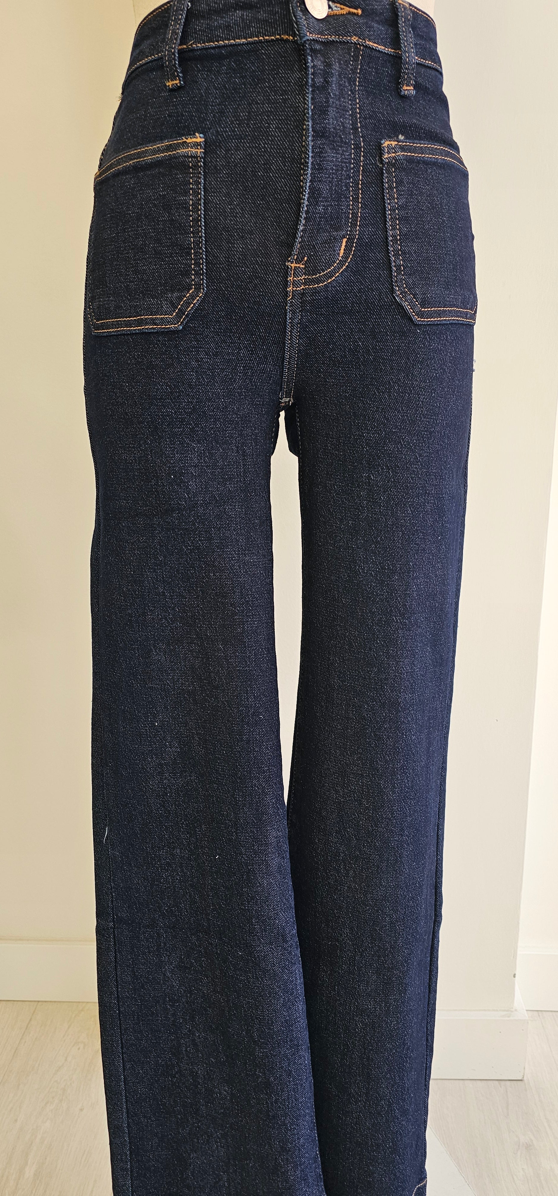Confeccionado en un tejido con ligera elasticidad, este vaquero presenta bolsillos frontales, tiro elevado y un corte recto que aporta comodidad y estilo.