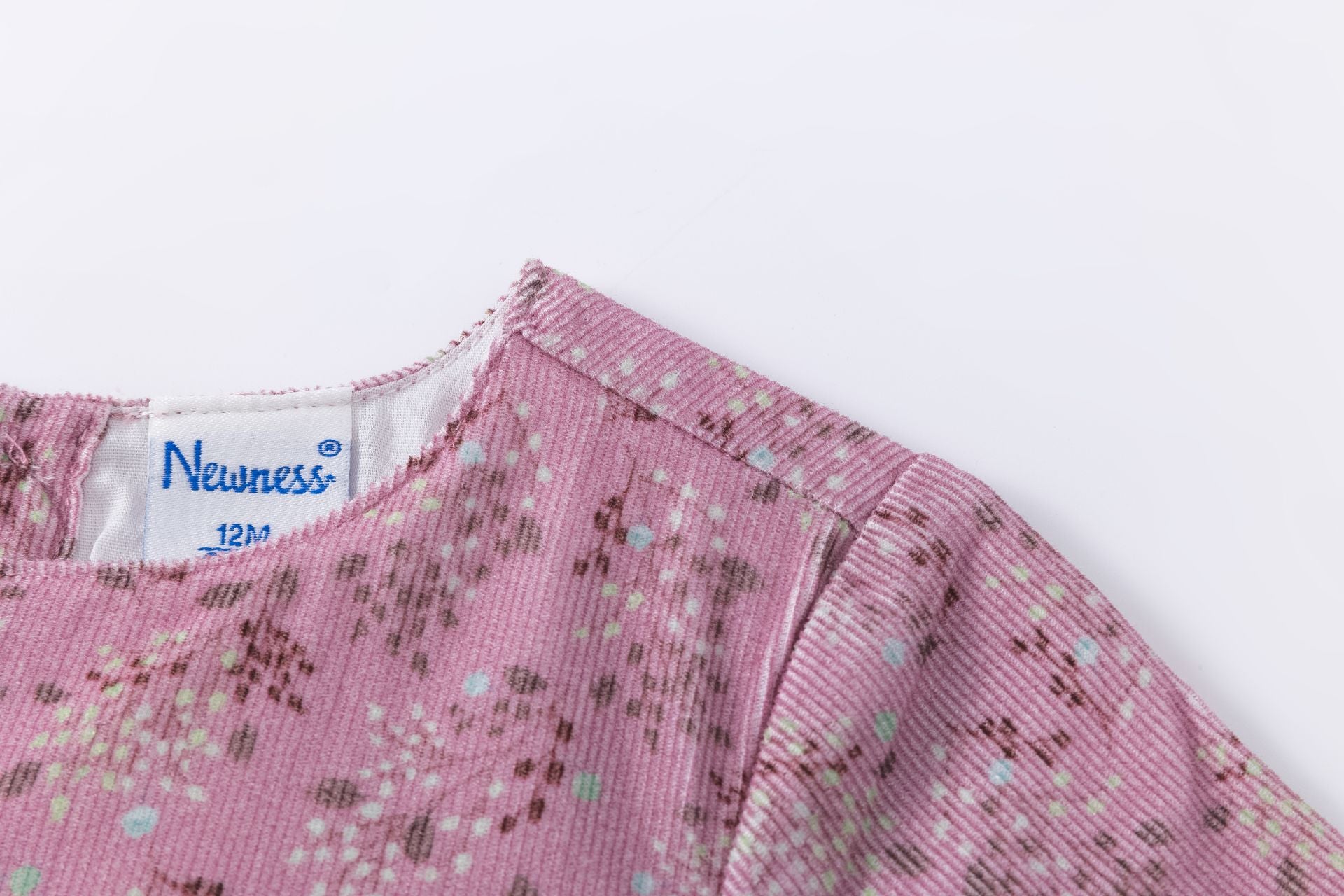 Vestido micropana de manga larga con volantes fruncidos a tono en la cintura y en mangas, puños con goma.Cierre trasero con botones.