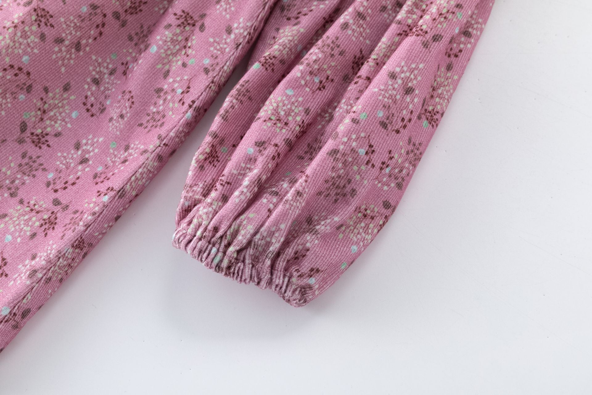 Vestido micropana con detalle de flores en las mangas, cierre atrasero con botones.