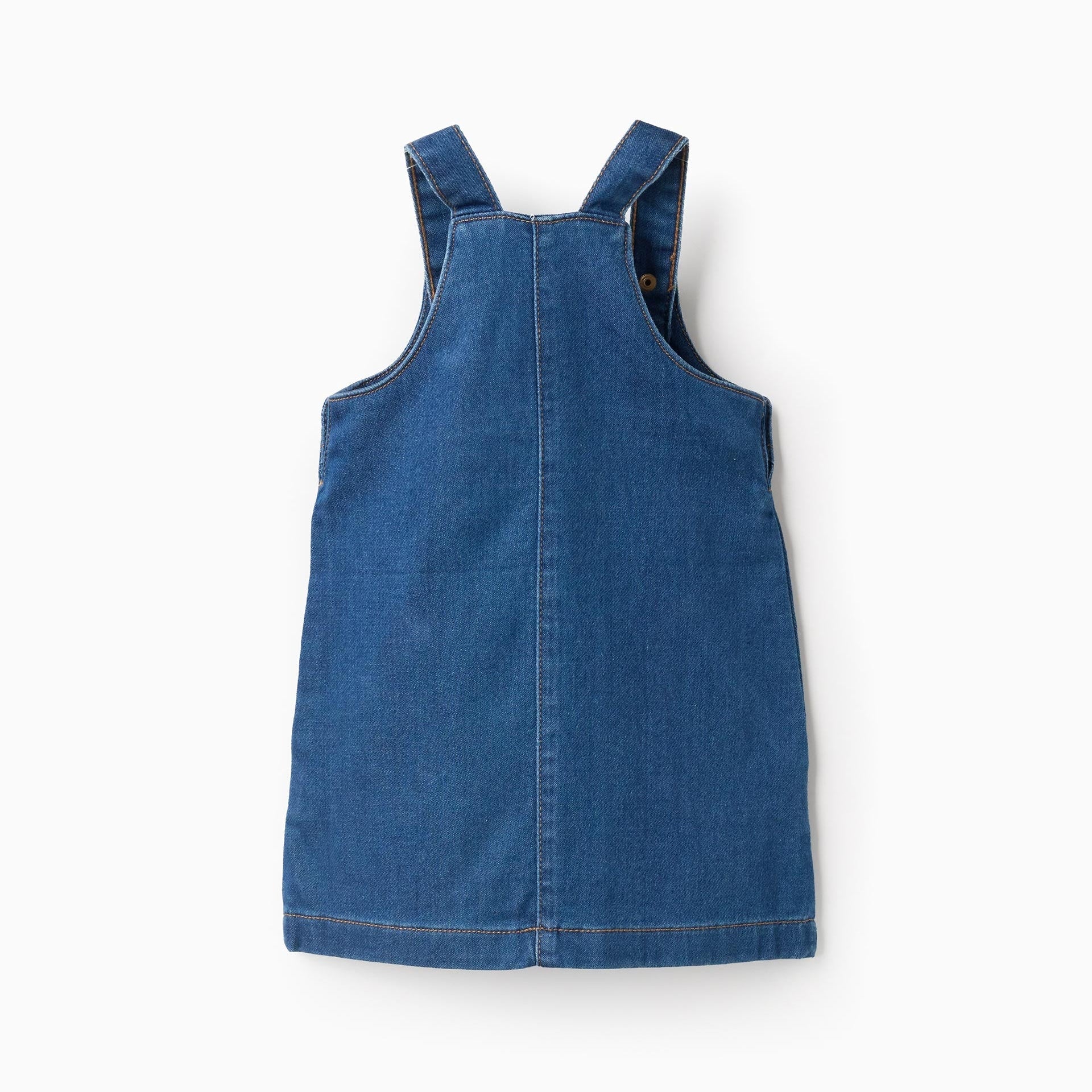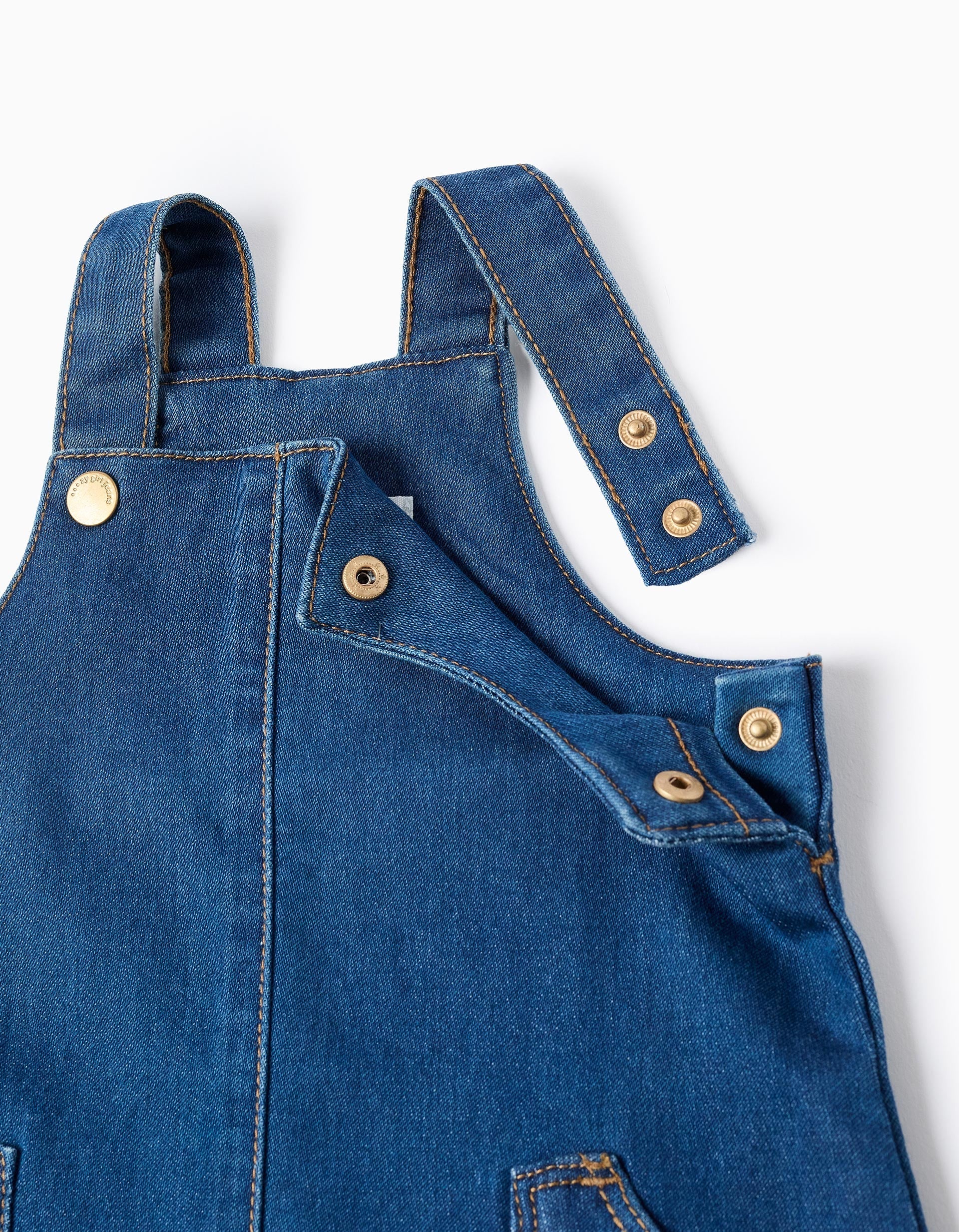 Vestido pichi vaquero azul para bebé niña, en mezcla de algodón. Tirantes ajustables. Bolsillos delanteros. ¡Imprescindible en el armario!