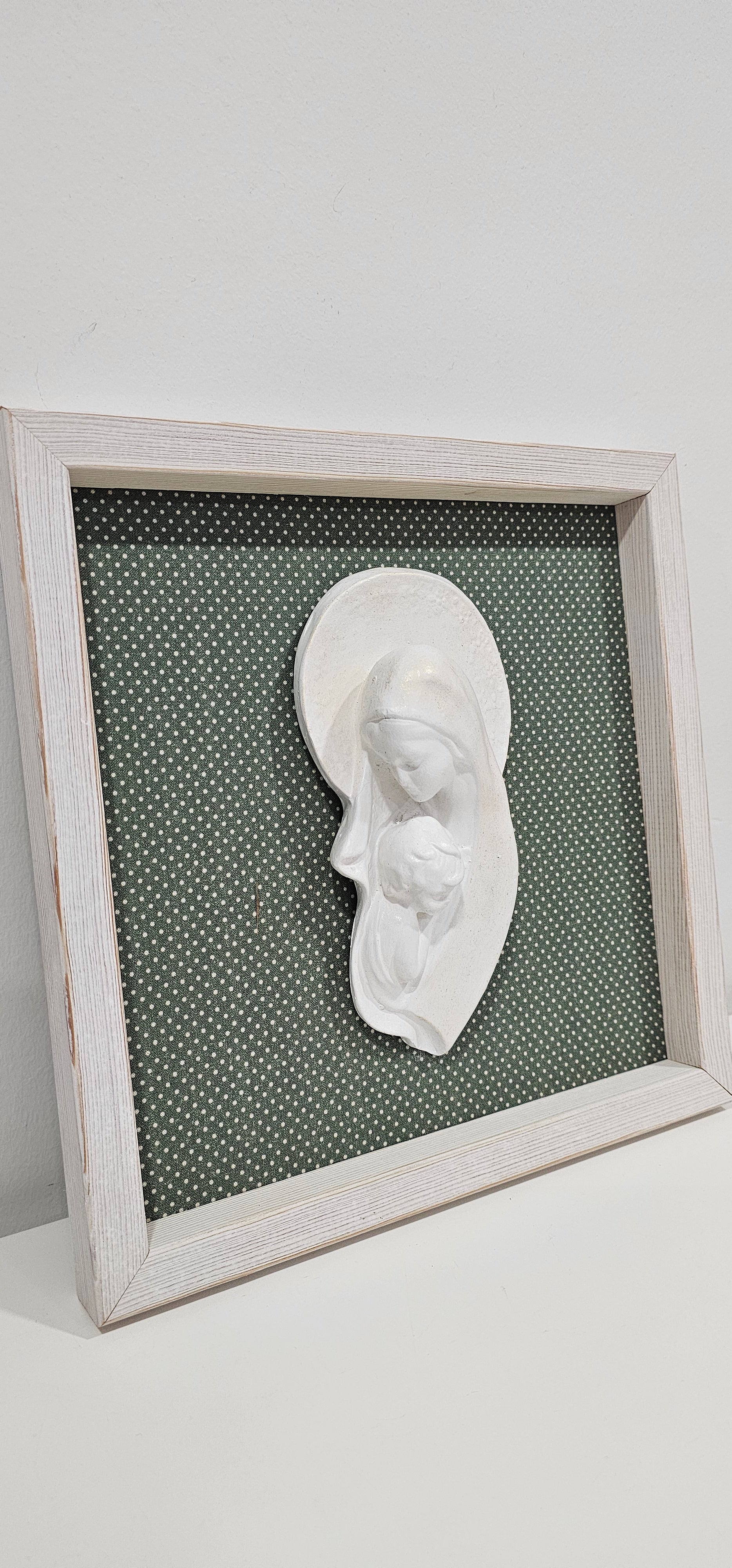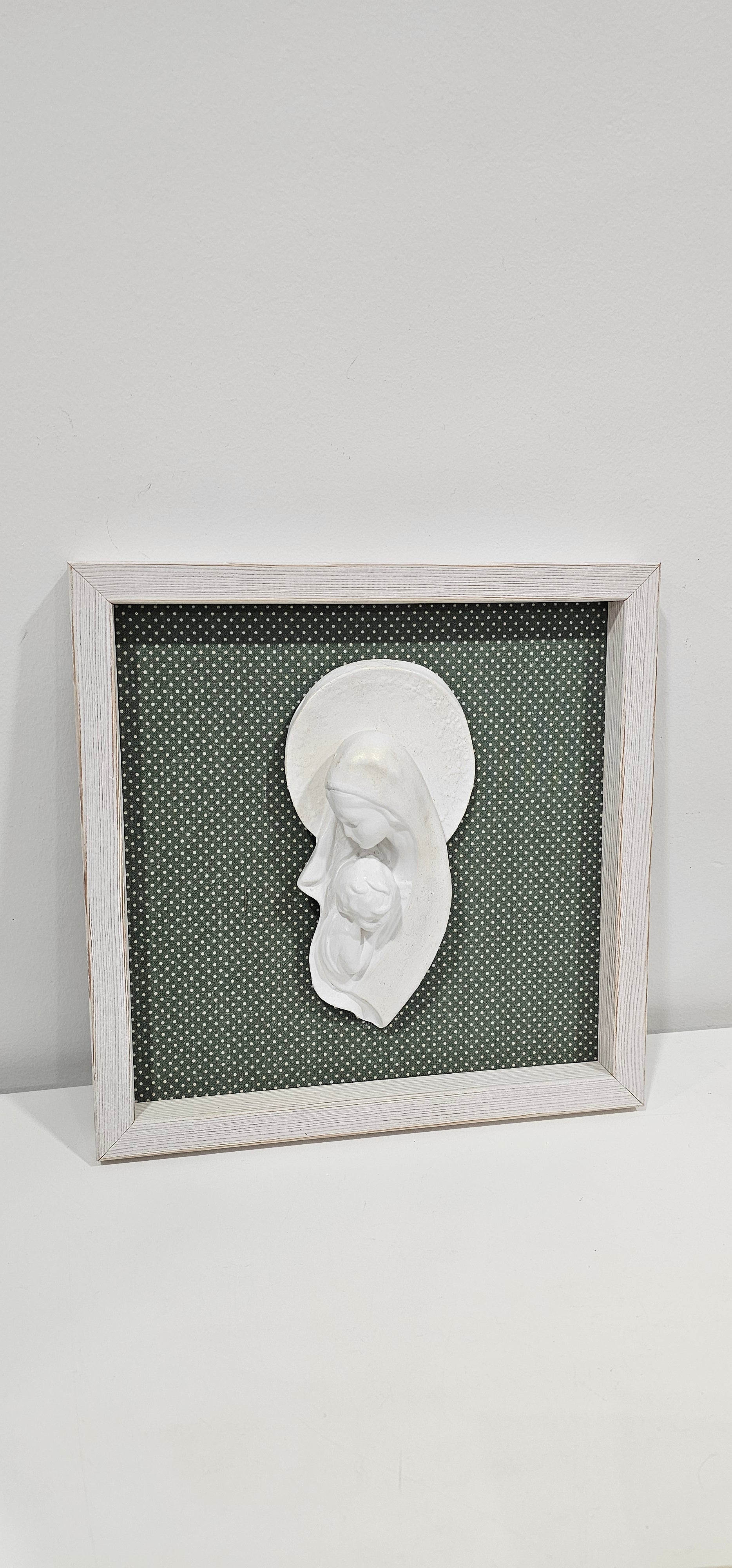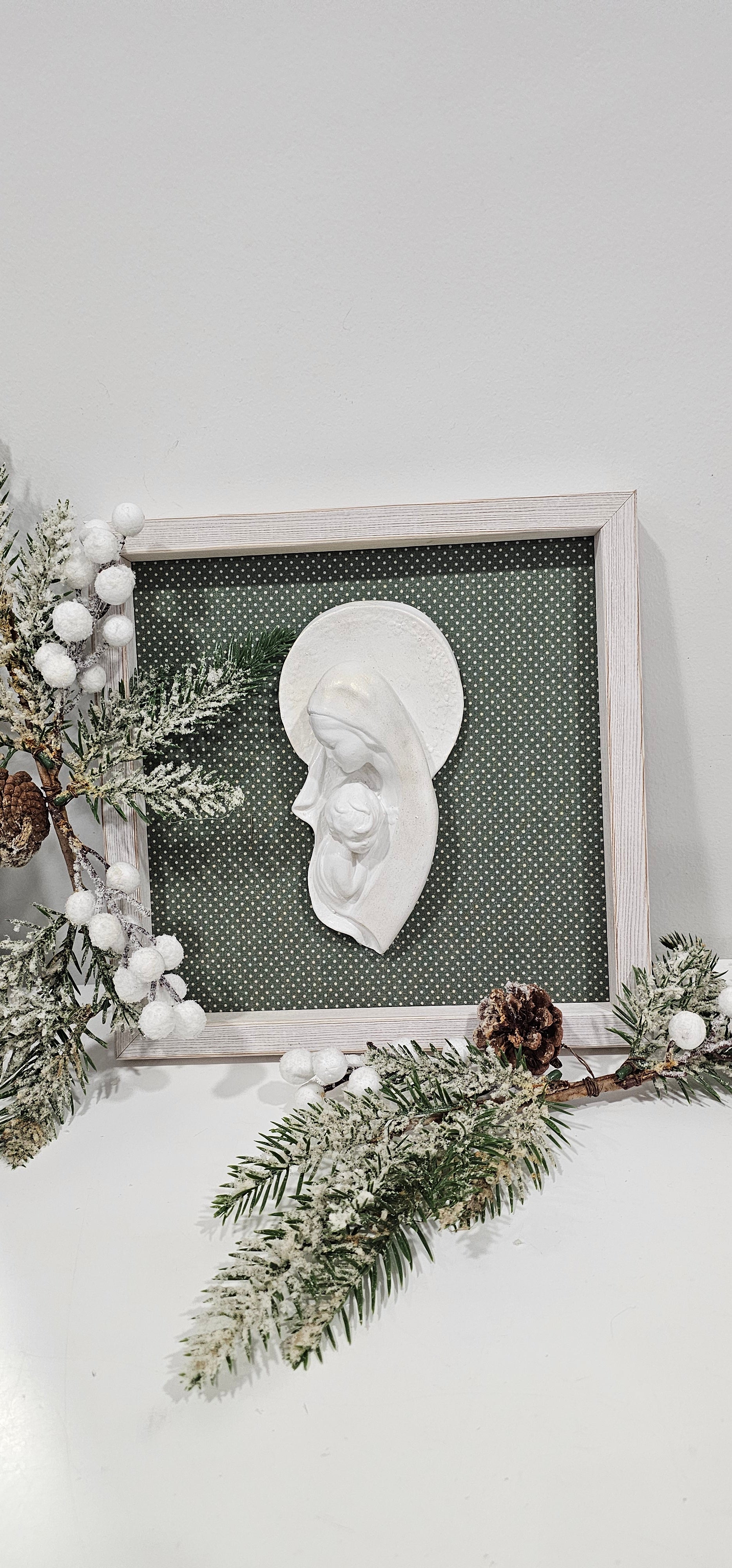 Descubre la magia de esta pieza de escayola que captura la serenidad de la Virgen con Niño en un formato cuadrado de 28 x 28. Montada sobre un bastidor con tela que acentúa cada detalle, es la declaración de intenciones perfecta para quien busca añadir un toque de elegancia atemporal a cualquier rincón. ¿Lo mejor? Podemos personalizarla para que sea completamente tuya. Ideal para bautizos, comuniones o simplemente para mimarte con belleza que trasciende las tendencias.