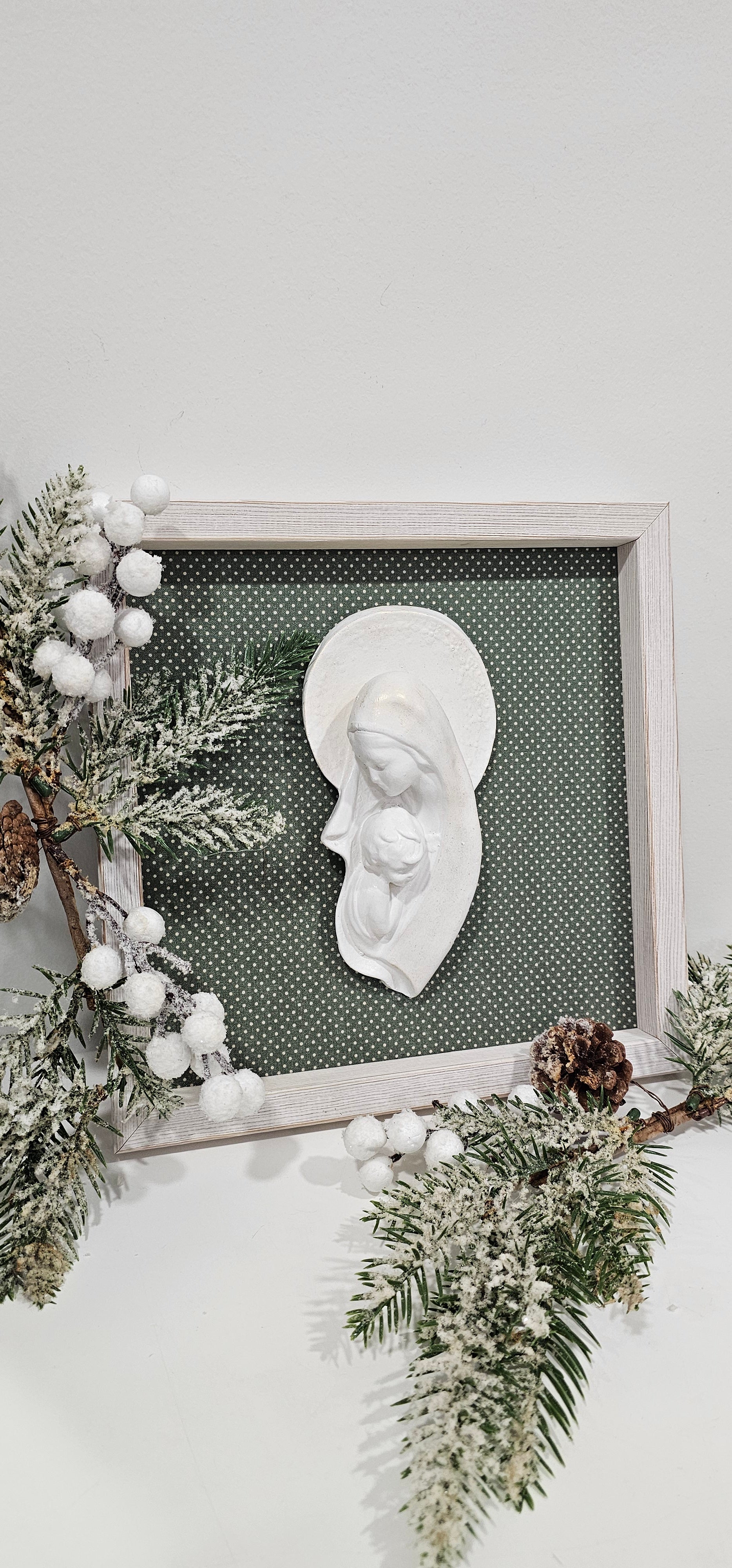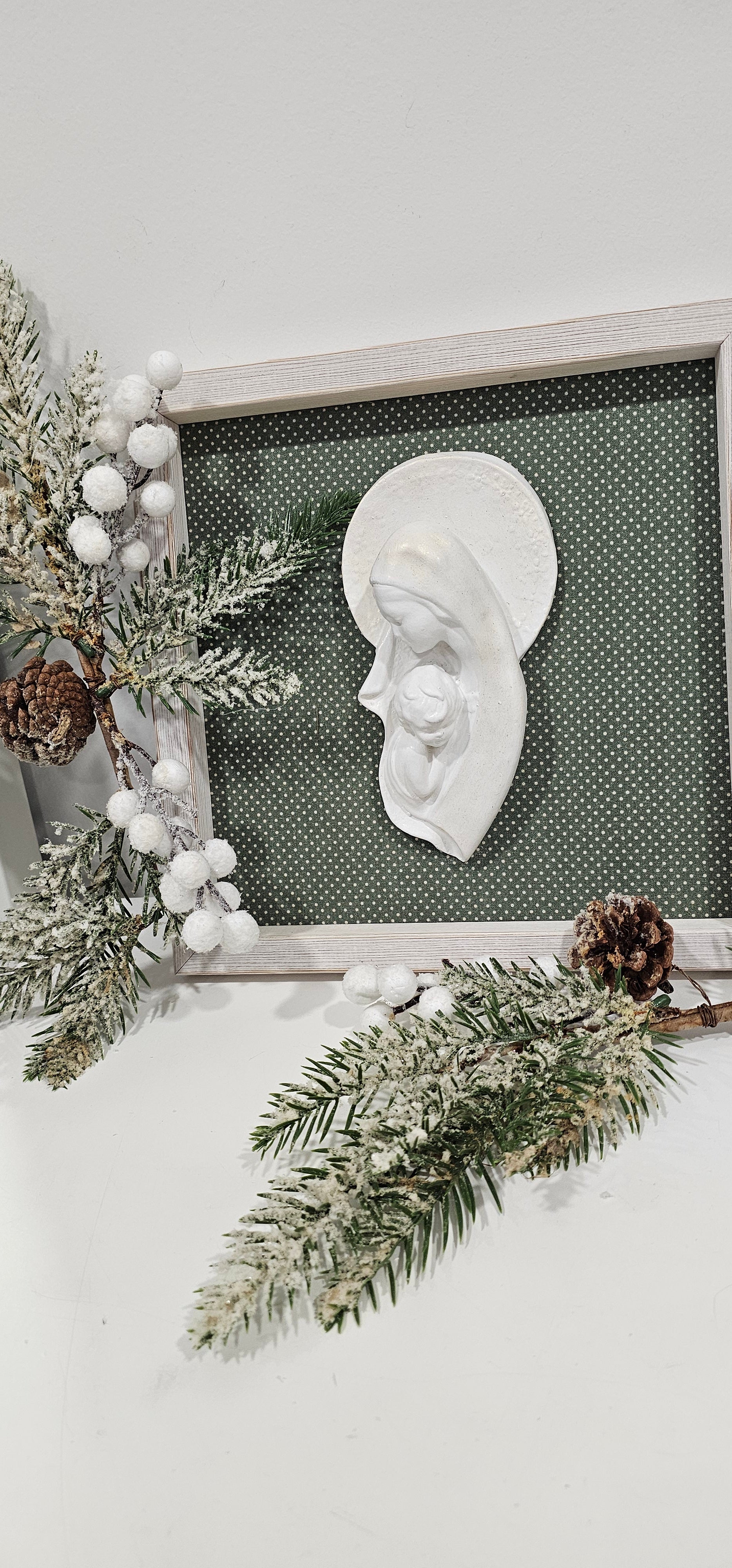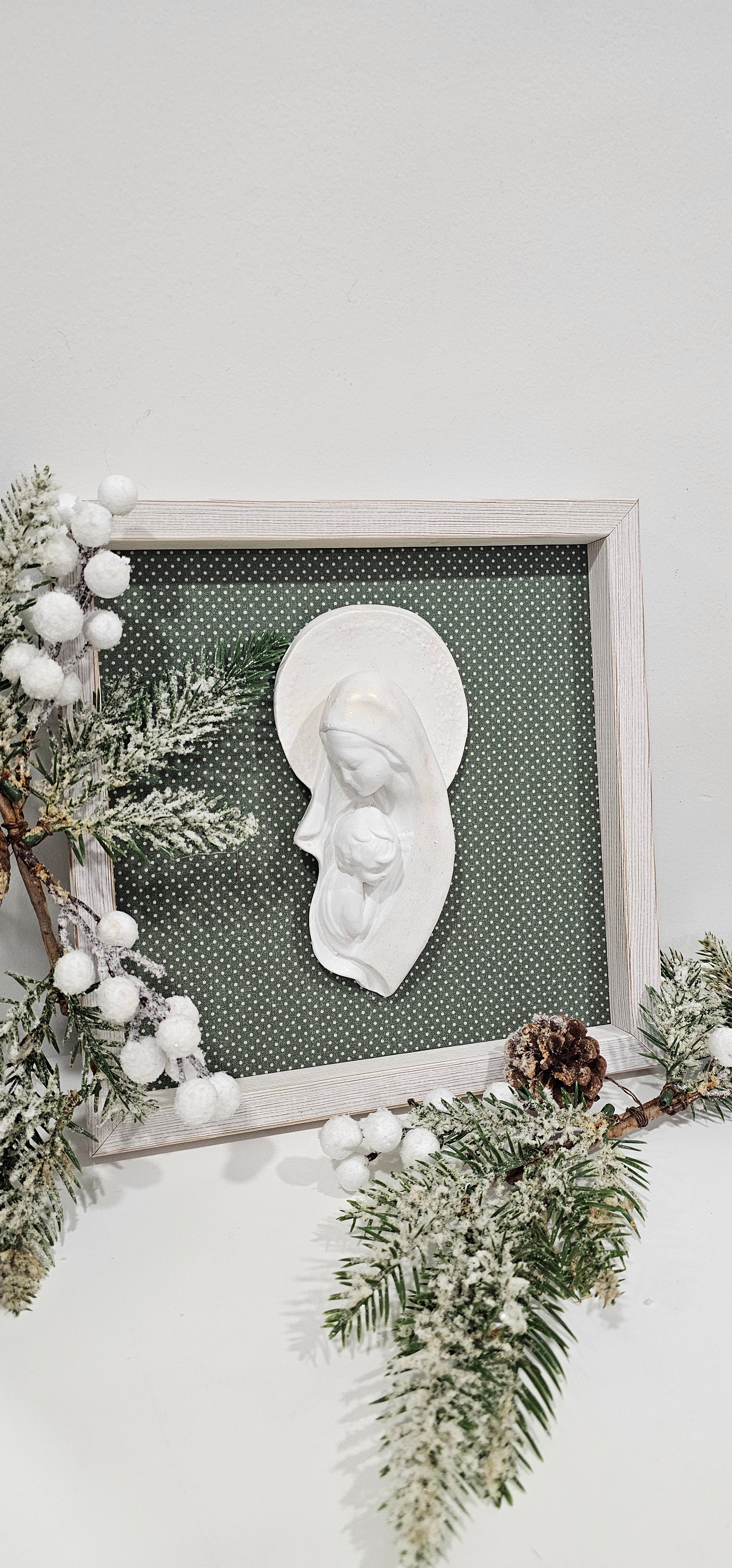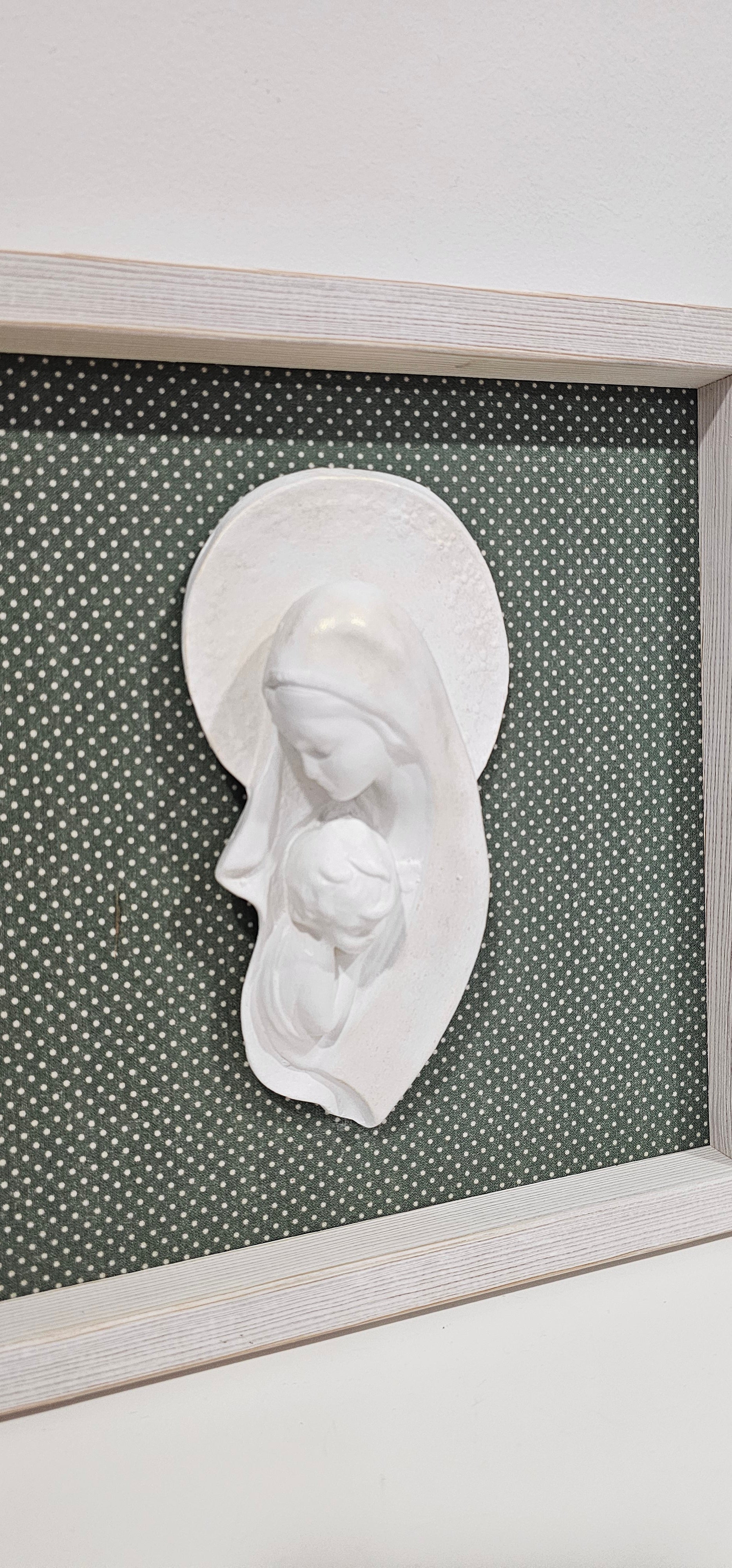 Descubre la magia de esta pieza de escayola que captura la serenidad de la Virgen con Niño en un formato cuadrado de 28 x 28. Montada sobre un bastidor con tela que acentúa cada detalle, es la declaración de intenciones perfecta para quien busca añadir un toque de elegancia atemporal a cualquier rincón. ¿Lo mejor? Podemos personalizarla para que sea completamente tuya. Ideal para bautizos, comuniones o simplemente para mimarte con belleza que trasciende las tendencias.